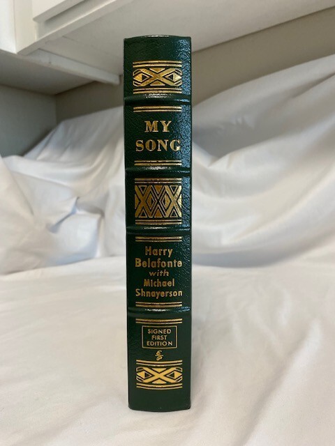 Harry Belafonte is not just one of the greatest entertainers of our time; he has led one of the great American lives of the last century. Now, this extraordinary icon tells us the story of that life, giving us its full breadth, letting us share in the struggles, the tragedies, and, most of all, the inspiring triumphs. Belafonte grew up, poverty-ridden, in Harlem and Jamaica. His mother was a complex woman—caring but withdrawn, eternally angry and rarely satisfied. His father was distant and physically abusive. It was not an easy life, but it instilled in young Harry the hard-nosed toughness of the city and the resilient spirit of the Caribbean lifestyle. It also gave him the drive to make good and channel his anger into actions that were positive and life-affirming. His journey led to the U.S. Navy during World War II, where he encountered an onslaught of racism but also fell in love with the woman he eventually married. After the war he moved back to Harlem, where he drifted between odd jobs until he saw his first stage play—and found the life he wanted to lead. Theater opened up a whole new world, one that was artistic and political and made him realize that not only did he have a need to express himself, he had a lot to express. He began as an actor—and has always thought of himself as such—but was quickly spotted in a musical, began a tentative nightclub career, and soon was on a meteoric rise to become one of the world’s most popular singers. Belafonte was never content to simply be an entertainer, however. Even at enormous personal cost, he could not shy away from activism. At first it was a question of personal dignity: breaking down racial barriers that had never been broken before, achieving an enduring popularity with both white and black audiences. Then his activism broadened to a lifelong, passionate involvement at the heart of the civil rights movement and countless other political and social causes. The sections on the rise of the civil rights movement are perhaps the most moving in the book: his close friendship with Martin Luther King, Jr.; his role as a conduit between Dr. King and the Kennedys; his up-close involvement with the demonstrations and awareness of the hatred and potential violence around him; his devastation at Dr. King’s death and his continuing fight for what he believes is right. But My Song is far more than the history of a movement. It is a very personal look at the people in that movement and the world in which Belafonte has long moved. He has befriended many beloved and important figures in both entertainment and politics—Paul Robeson, Eleanor Roosevelt, Sidney Poitier, John F. Kennedy, Marlon Brando, Robert Kennedy, Nelson Mandela, Fidel Castro, Tony Bennett, Bill Clinton—and writes about them with the same exceptional candor with which he reveals himself on every page. This is a book that pulls no punches, and turns both a loving and critical eye on our country’s cultural past. As both an artist and an activist, Belafonte has touched countless lives. With My Song, he has found yet another way to entertain and inspire us. It is an electrifying memoir from a remarkable man. 469 pages, Signed 673 of 700. This book is in "Like New" condition. Well-kept in smoke free, pet free home.