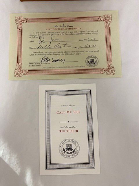 "Early to bed, early to rise, work like hell and advertise!" These words of fatherly advice helped shape Ted Turner's remarkable life, but they only begin to explain the colorful, energetic, and unique style that has made Ted into one of the most amazing personalities of our time. Along the way - among his numerous accomplishments -- Ted became one of the richest men in the world, the largest land owner in the United States, revolutionized the television business with the creation of TBS and CNN, became a champion sailor and winner of the America's Cup, and took home a World Series championship trophy in 1995 as owner of the Atlanta Braves. An innovative entrepreneur, outspoken nonconformist, and groundbreaking philanthropist, Ted Turner is truly a living legend, and now, for the first time, he reveals his personal story. From his difficult childhood to the successful launch of his media empire to the catastrophic AOL/Time Warner deal, Turner spares no details or feelings and takes the reader along on a wild and sometimes bumpy ride. You'll also hear Ted's personal take on how we can save the world...share his experiences in the dugout on the day when he appointed himself as manager of the Atlanta Braves....learn how he almost lost his life in the 1979 Fastnet sailing race (but came out the winner)...and discover surprising details about his dealings with Fidel Castro, Mikhail Gorbachev, Jimmy Carter, Bill Gates, Jack Welch, Warren Buffett, and many more of the most influential people of the past half century. Ted also doesn't shrink from the darker and more intimate details of his life. With his usual frankness, he discusses a childhood of loneliness (he was left at a boarding school by his parents at the tender age of four), and the emotional impact of devastating losses (Ted's beloved sister died at seventeen and his hard-charging father committed suicide when Ted was still in his early twenties). Turner is also forthcoming about his marriages, including the one to Oscar-winning actress, Jane Fonda. Along the way, Ted's friends, colleagues, and family are equally revealing in their unique "Ted Stories" which are peppered throughout the book. Jane Fonda, especially, provides intriguing insights into Ted's inner drive and character. In CALL ME TED, you'll hear Ted Turner's distinctive voice on every page. Always forthright, he tells you what makes him tick and what ticks him off, and delivers an honest account of what he's all about. Inspiring and entertaining, CALL ME TED sheds new light on one of the greatest visionaries of our time. 433 pages. Signed 299 of 1,125. "Like new" condition. Well-kept in smoke free, pet free home.