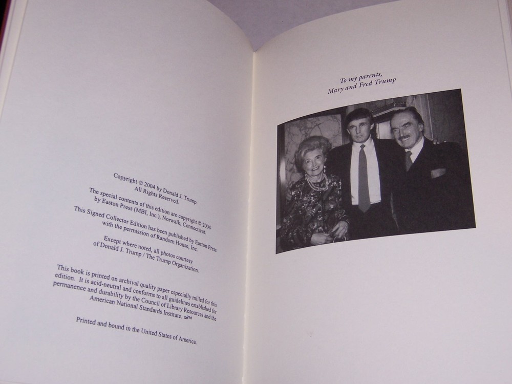 This signed collector's edition from Easton Press is absolutely stunning—the premium leather binding, gilded edges, and ribbon marker make it feel luxurious. Trump's signature adds a special touch, and the quality craftsmanship ensures it'll last for years. A must-have for any collector or fan looking for a beautifully made keepsake!