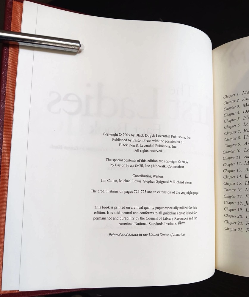 Easton Press: THE FIRST LADIES FACT BOOK by Bill Harris - Leather Edition. The book is in pristine condition....