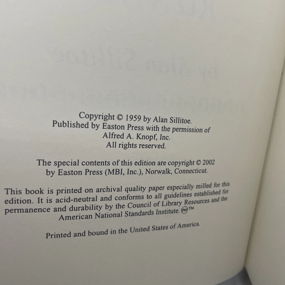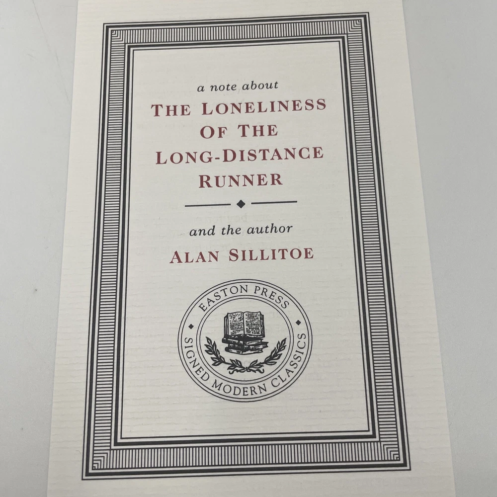 Easton Press THE LONELINESS OF THE LONG-DISTANCE RUNNER Alan Sillitoe Signed COA. Smoke and pet free home!...