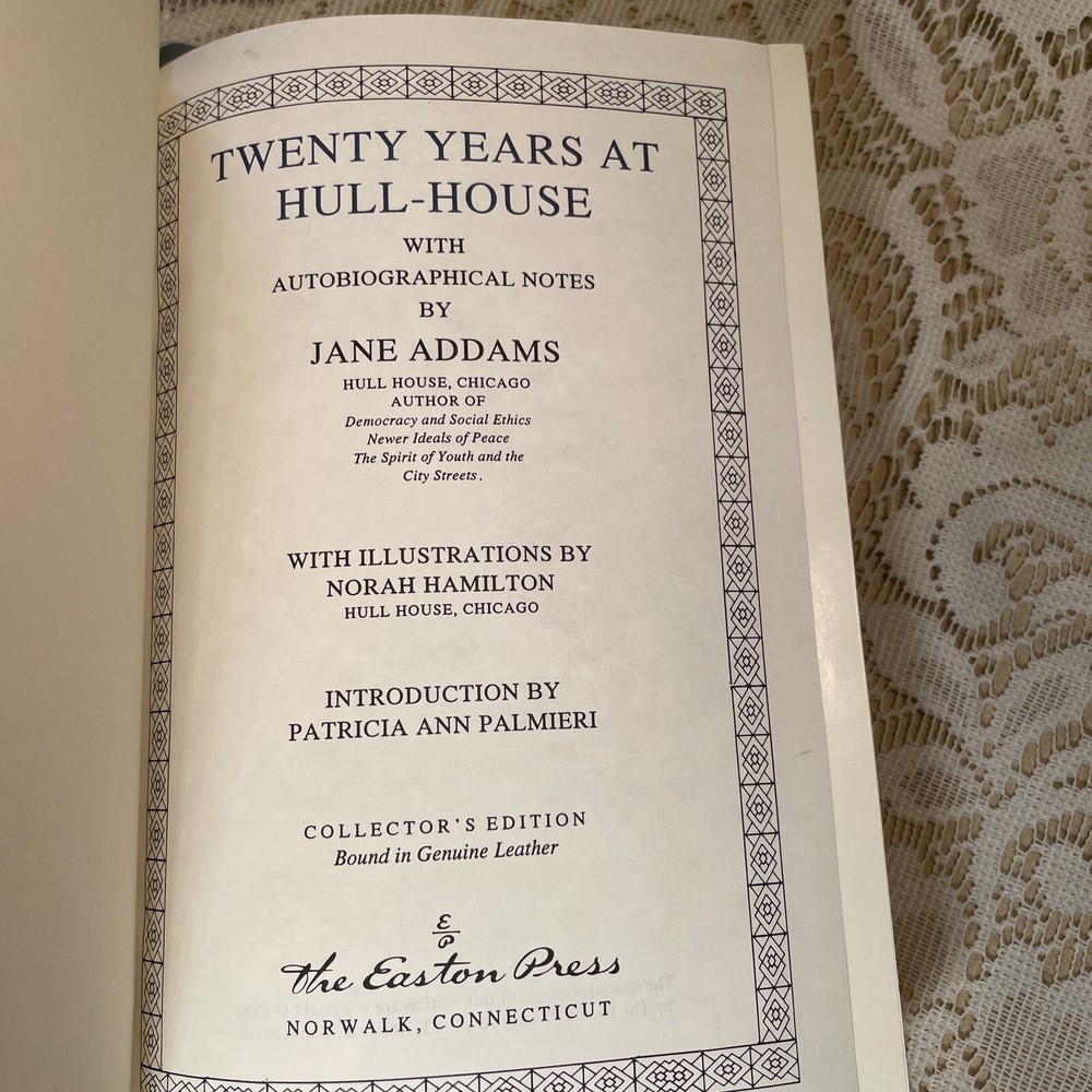 Easton Press TWENTY YEARS AT HULL HOUSE Jane Addams. This book is LIKE NEW! PAGE PERFECT! The gild is beautiful! This book seems to be unread the binding is very tight and never fully opened....