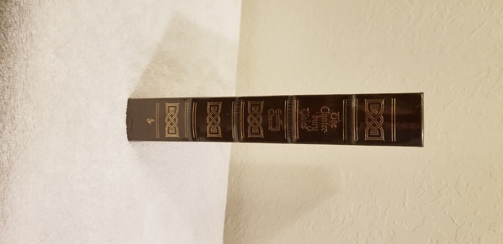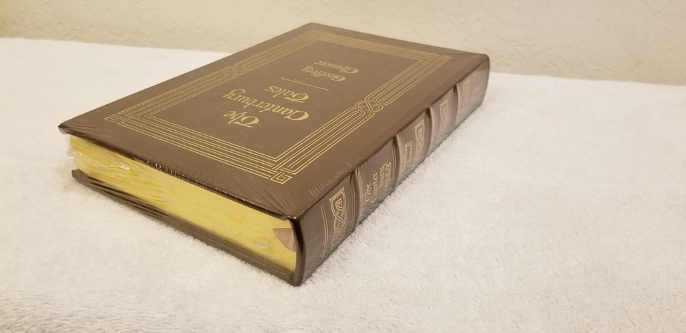 Easton Press The Cantebury Tales by Geoffrey Chaucer - New sealed - collectors. - Fully and tightly bound in genuine leather. - 22kt gold accents deeply inlaid on the "hubbed" spine. - Heavy duty binding boards enhance the book’s durability. - Superbly printed on acid-neutral paper that lasts for generations. - Sewn pages — not just glued like ordinary books. - Handsome moiré endpages and a satin-ribbon page marker. - Gilded page ends. - Printed and bound in the USA using imported materials. - Rigorous inspection at every stage ensures adherence to our exacting standards. - Superb craftsmanship and commitment to quality. These Easton Press editions are printed on sturdy, acid-neutral paper specially milled for this edition that conforms to all guidelines established for permanence and durability by the Council of Library Resources and the American National Standards Institute.