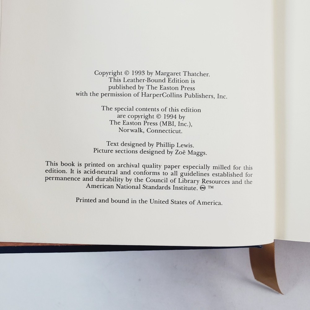 Easton Press The Downing Street Years Margaret Thatcher Signed 1993 All pages are clean. No notation or highlights. Binding is tight. Book shows very minor shelf wear.