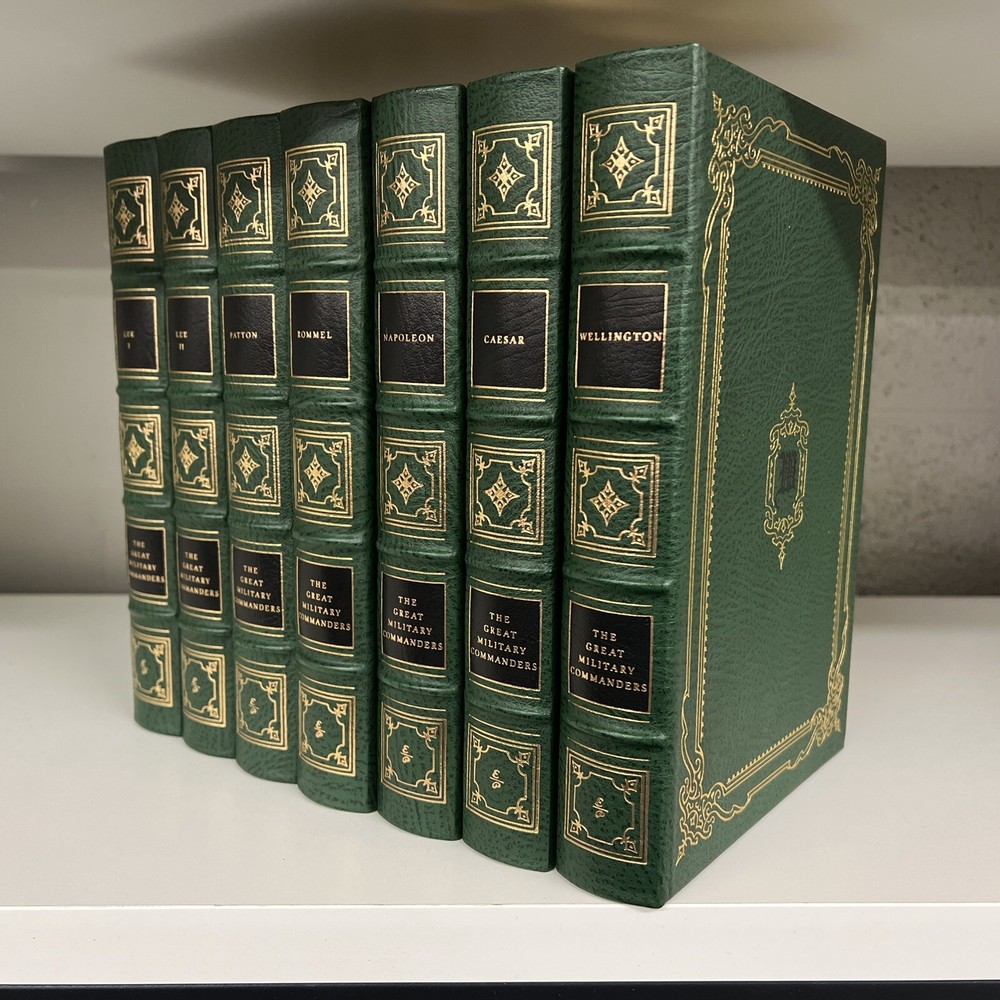 Easton Press The Great Military Commanders in 7 vols: Caesar Lee Napoleon Rommel. This shit is in pristine condition. It does have the previous owners embossed stamp on it. Please see pictures. We ship daily, and we try to package perfectly, so that it will arrive to you in the same condition it left us! Please see our other Easton Press listings that we will be posting over the next few weeks. There were some real treasures
