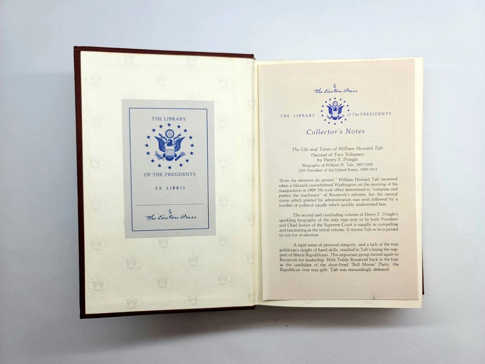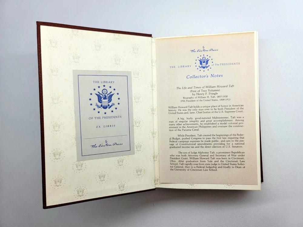 Easton Press The Life & Times of William Howard Taft 2 Vols Leather edition This is a used book with general edge and shelf wear, some fading to the covers and spotting on gilded page edges. No writing or highlights. Please utilize pictures to determine the exact condition of each item. If you have a question, please send a message, and I will answer you promptly. Thanks for looking.