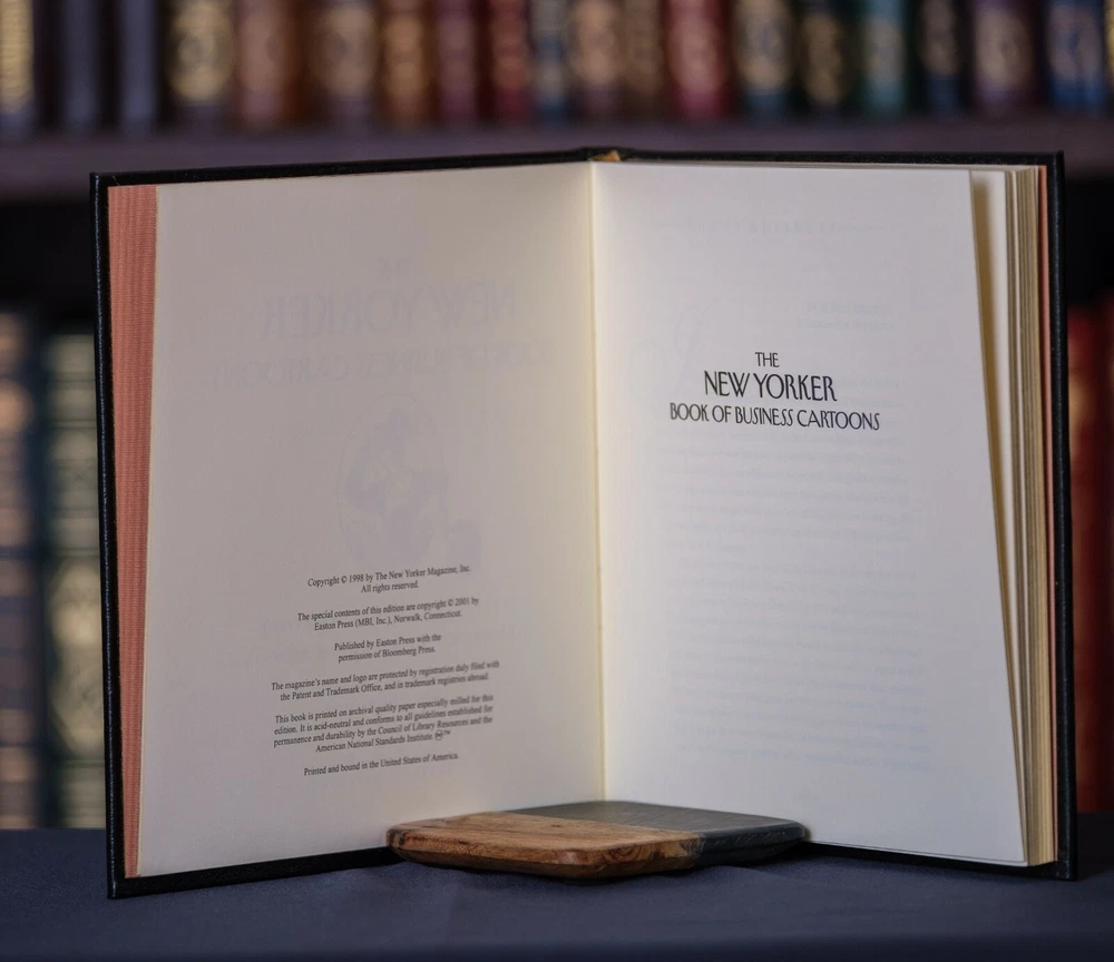 This is a gorgeous edition of The New Yorker Book of Business Cartoons. This book is in excellent condition. There are no owner's marks, writing, etc. in the book. The book carries no scent from smoking, pets, etc. See the photos for the actual condition of the book and please message us with any questions about the condition of this title. Thanks for looking! We have multiple listings of Franklin Library and Easton Press books and we can combine shipping on multiple books.