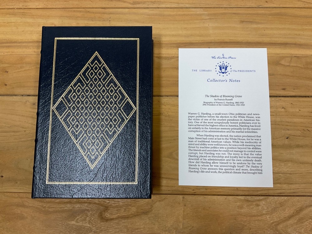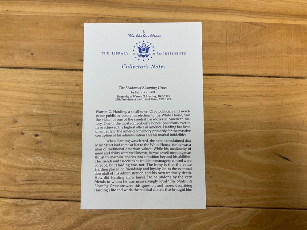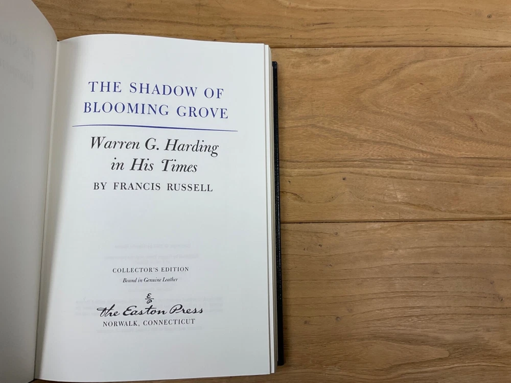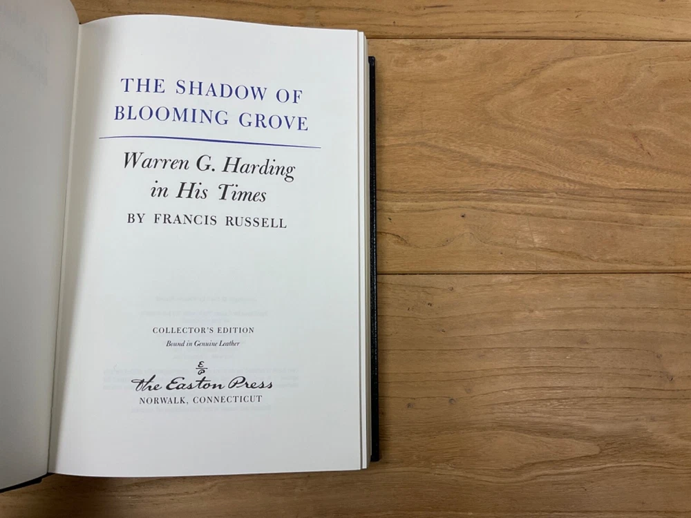 This Easton Press collector's edition book titled "The Shadow of Blooming Grove" by Francis Russell is a must-have for any political enthusiast. Published in 1988, this book offers a unique perspective on the life and career of Warren G. Harding, the former President of the United States. The leather binding and Norwalk, CT publication add to its antique value, making it a great addition to any book collection. The book is written in English and covers topics such as politics, biography, and autobiography. It is a rare find and a great opportunity for collectors to own a piece of history.