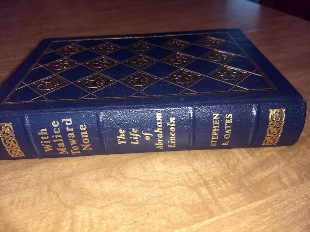 Easton Press With Malice Toward None: The Life of Abraham Lincoln by Oates. Includes note about President Gerald R Ford who introduces Abraham Lincoln. There is a light smudge on the card- please see picture. Otherwise Nice condition. We'll ship in box for protection Shipped with USPS Media Mail.