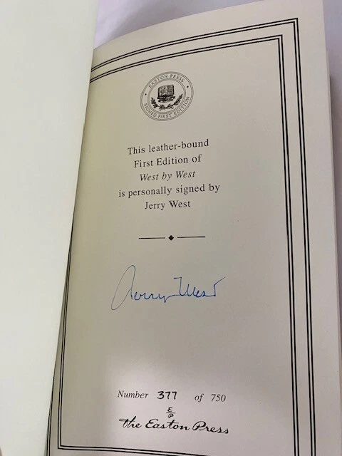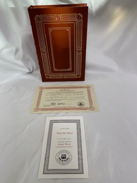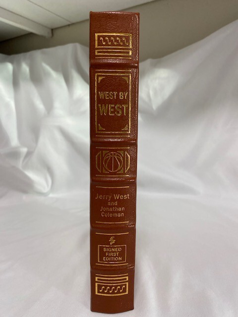 Jerry West is one of the most revered and enigmatic sports icons of all time, but beneath the surface lies a complicated man who shares his true story with unflinching candor. WEST BY WEST recounts West's difficult journey from an abusive childhood in West Virginia (and the loss of a beloved brother to war) to his All-American success at West Virginia University, and his brilliant 40-year career with the Los Angeles Lakers. He speaks openly for the first time about his lifelong battle with depression, low self-esteem, and his complex relationships with NBA legends Elgin Baylor, Bill Russell, Wilt Chamberlain, Kareem Abdul-Jabbar, Pat Riley, Shaquille O'Neal, and Kobe Bryant, with owners Jack Kent Cooke and Jerry Buss, coach Phil Jackson, and many more. Unsparing in its self-assessment, WEST BY WEST is a profound confession and a magnificent inspiration, a book that generated much discussion when it was published last year and is sure to be talked about for years to come. 338 pages, signed 377 of 750. "Like new" condition. Little fading of gold gilding on top of pages.