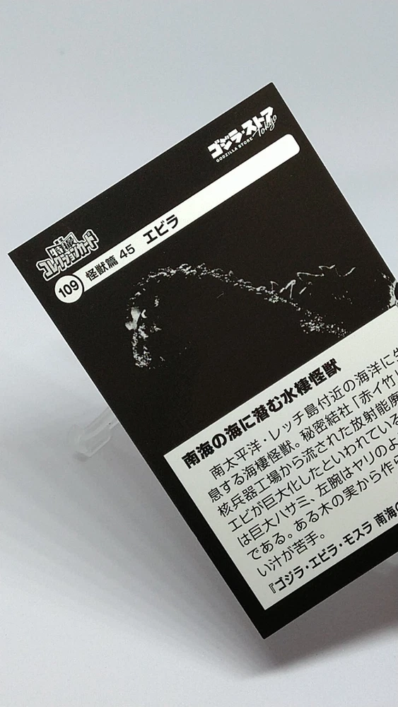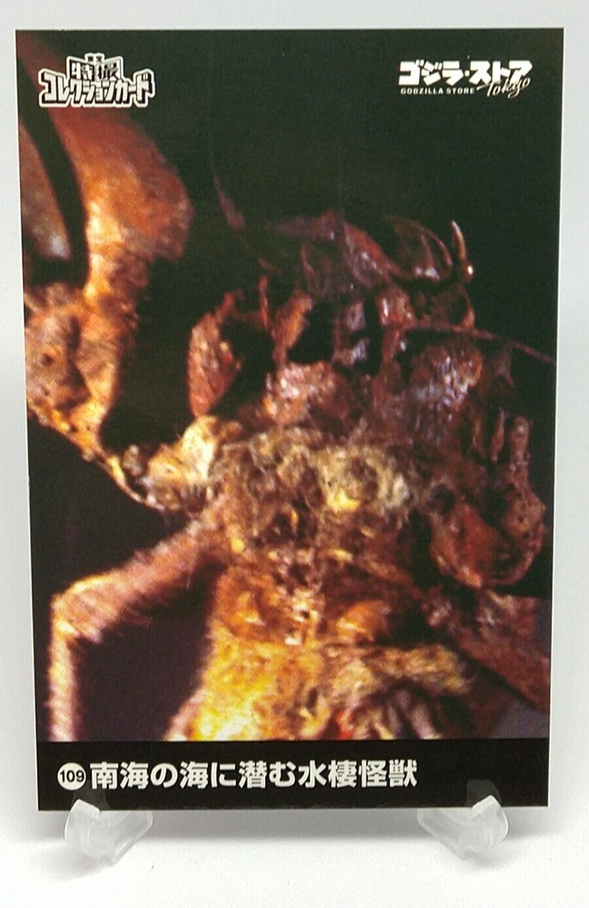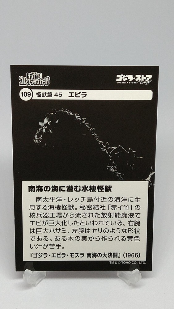 Ebilla Toho Tokusatsu Collection Card No.109 Godzilla Store Tokyo Japanese Description Please see the picture for the details of damages and dirt or ask us before your purchase. 100% Authentic or Money Back Guaranteed. (Do not worry you are protected by eBay and eBay Managed Payments) See the pictures for more details. If you have any question about the condition, accessories, or anything about the product, please feel free to message us. We are glad to answer all your concerns. Payment Same as ebay payment method. Shipping Economy shipping: Delivery time will be about 11 - 23 days. Standard shipping: Delivery time will be about 5 - 10 days. Expedited shipping: Delivery time will be about 1 - 4 days. Terms of Sale Money back guarantee within 30 days if returned by customer. We would not be able to accept your bid if you; 1) Don't have a PayPal account. 2) Have unpaid items reported. 3) Have a primary shipping address in countries you don't ship to. 4) Have reportedly violated eBay policies. 5) Have a Feedback score lower than the number you specify. International Buyers - Please Note: Import duties, taxes and charges are not included in the item price or shipping charges. These charges are the buyer's responsibility. Please check with your country's customs office to determine what these additional costs will be prior to bidding/buying. These charges are normally collected by the delivering freight (shipping) company or when you pick the item up - do not confuse them for additional shipping charges.