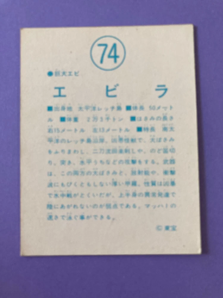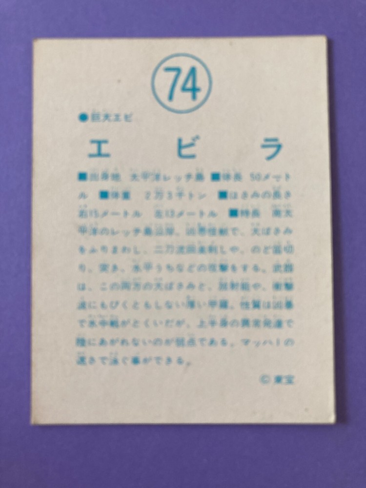 Vintage TOHO Ebirah vs Godzilla No.74 Giant Monster Retro Japanese Card