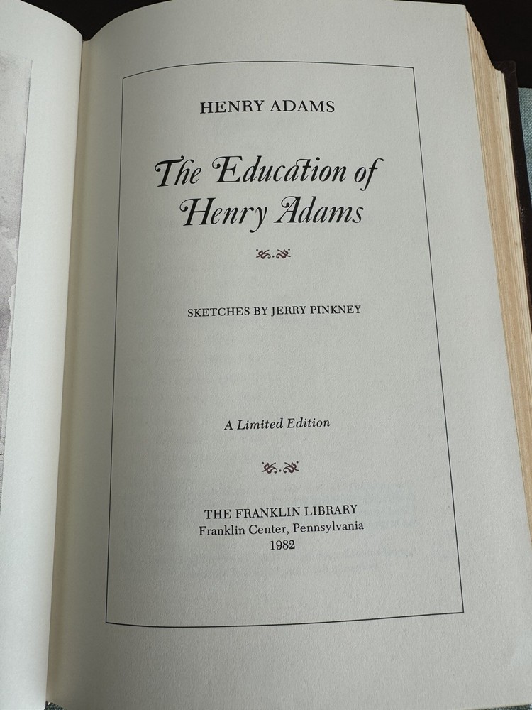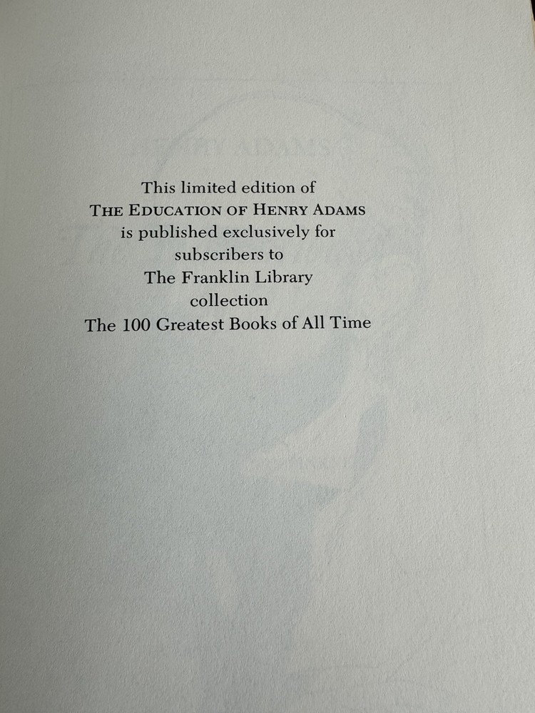This is a limited edition copy of "Education of Henry Adams" by Henry Adams, published by Franklin Library in 1982. The book is bound in leather and is in excellent condition. It features the author's autobiography and is considered a classic in the genre of biography and autobiography. This copy also includes special attributes such as being a limited edition and published by a reputable publisher like Franklin Library. The book is written in English and is an original edition. It is a great addition to any collection of antique or collectible books. Photos are of actual item. This volume is in excellent condition has the appearance of never been opened or read. There is a Tiny mark on the cover. Please see pictures for more info.