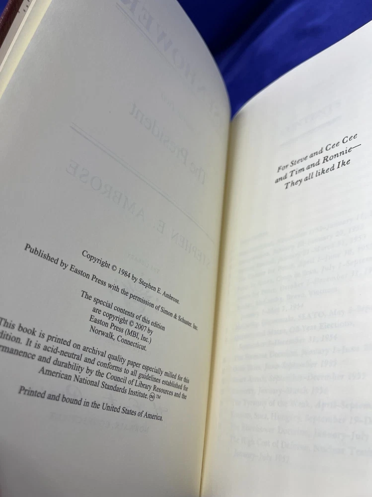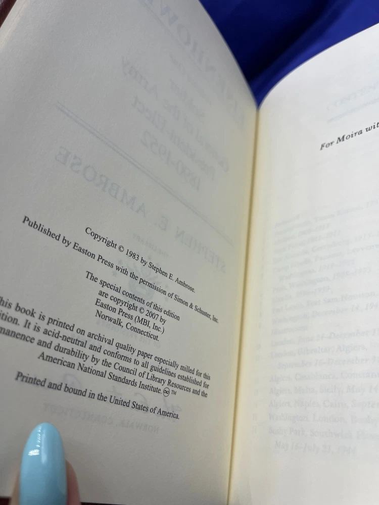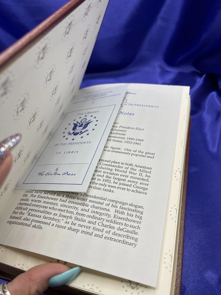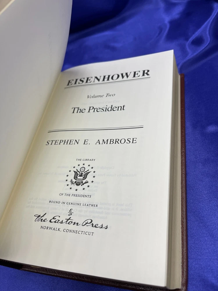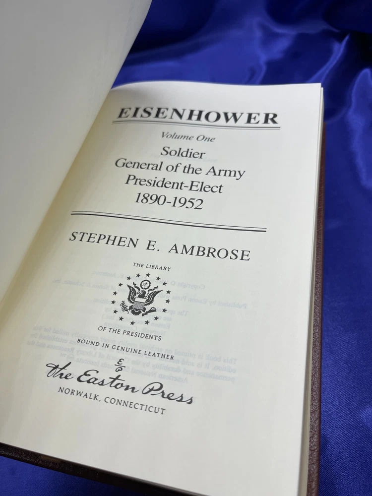 Eisenhower Stephen Ambrose Volume I and 11 Easton Press Leather HC Book Set Description Eisenhower Stephen Ambrose Volume I and 11 Easton Press Leather HC Book Set . Product Detail • Book Title : Eisenhower Volume I 1890-1952, Volume II 1952-1969 • Author : Stephen E. Ambrose • Format : Leather Hardcover • Type: Books Please message me if you have any questions.