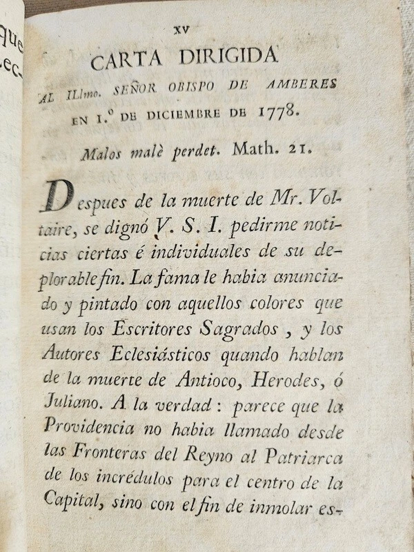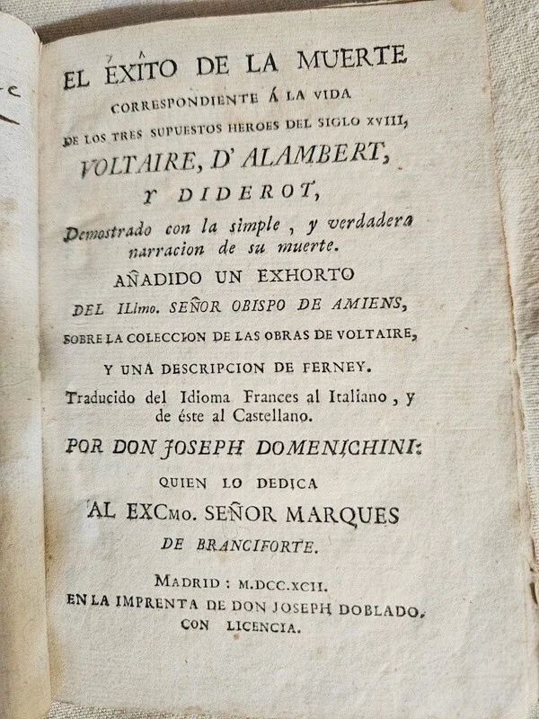 Please refer to the photo of the title page for the description of this 234 year old book about Voltaire, D'Alambert and Diderot which it calls the heroes of the 18th Century.. This is a small book just 6"x4" but has 291 pages. Please email me with any questions.