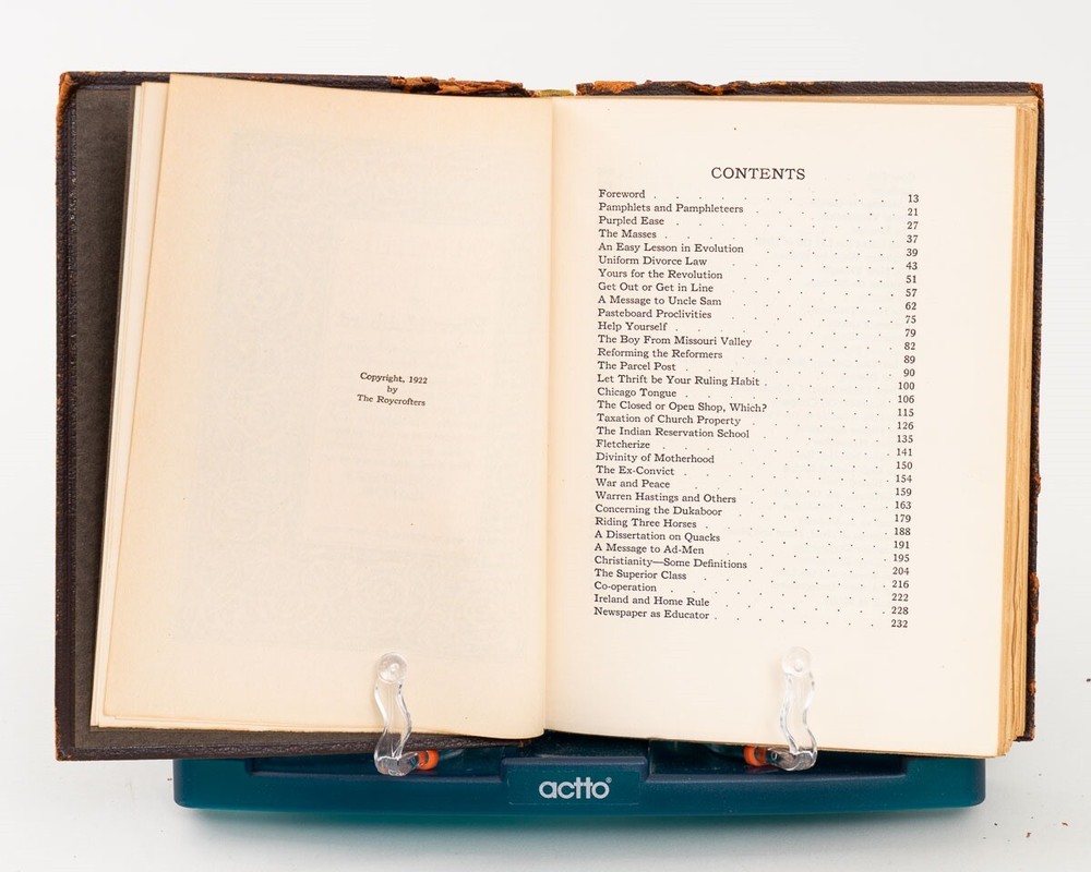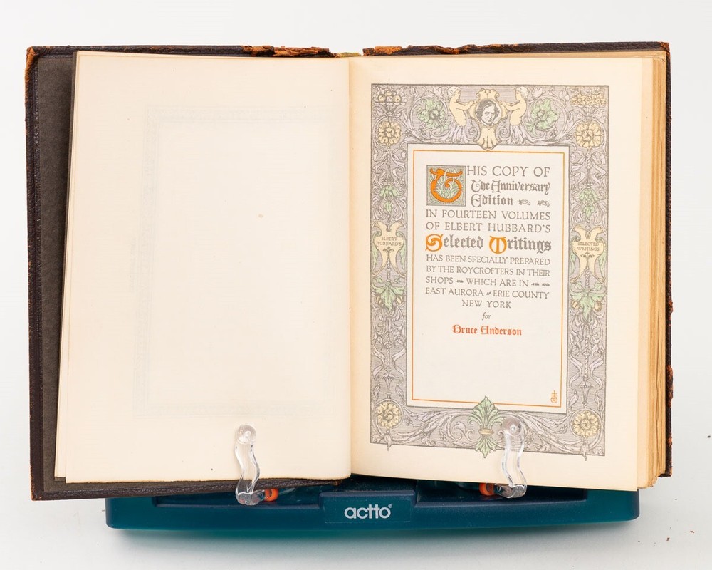 Selected Writings of Elbert Hubbard Volumes One & Two (from 14 Vol Set) Anniversary Edition Roycroft, 1922 Good Condition: Mild wear, as expected with age and use, such as wear to covers, including chipping and loss around edges and corner, some separation at spines, etc. Interiors are clean with some toning. Please see detailed photos below for item condition....,