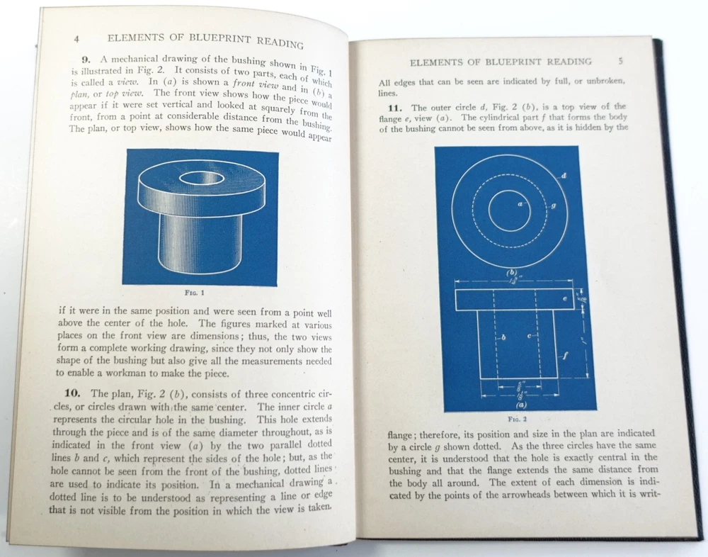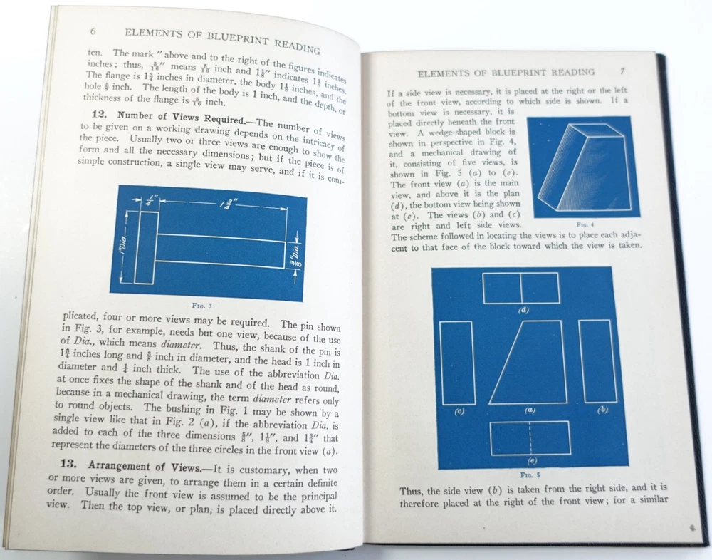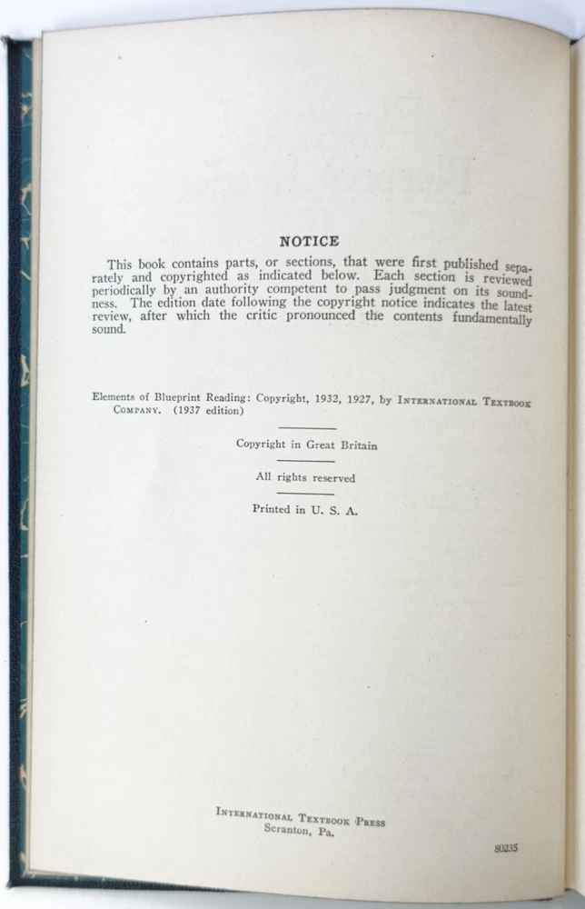 Elements of Blueprint Reading by I.C.S. Staff Leather Bound 1937 edition 209B Condition: Book is in good condition with some wear, some separation at spine. Bagged and shipped with care. Excellent illustrations throughout. Please see all photos for best description of condition. See description for more details. Description: Publisher International Textbook Company, Scranton, PA., Leather Bound, Marbled endpapers. Excellent illustrations throughout, 65 pages. Size: 5” x 7 5/8” Item is "As is". 30 Day Returns accepted. Please see all photos and e-mail me if you would like more views. Item is shipped within 1 business day once payment is received, and to include tracking. If the carrier transit of your item appears as though it will be late, is lost, or arrives damaged (will require photos if damaged), please message me. Delivery time will depend on the and location of buyer, carrier, and shipping type. I ship Worldwide for this item. International shipping is via the eBay Global shipping program so charges will vary and not all countries are included, so please check shipping pricing prior to bidding. BDRM, Under Table, Connie