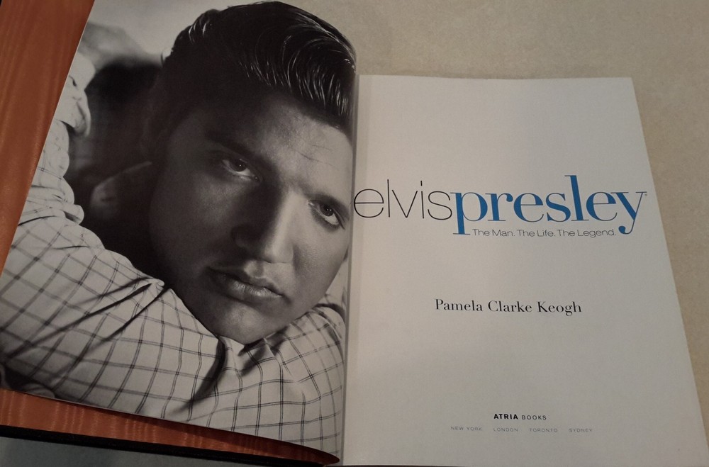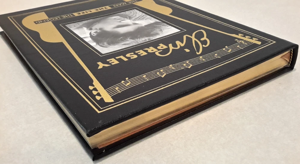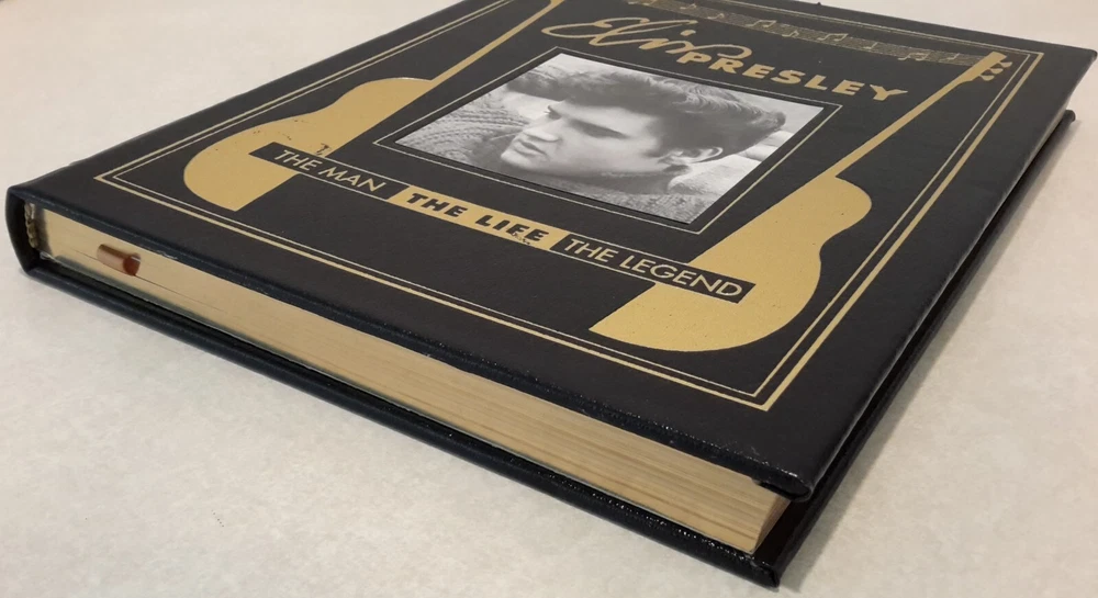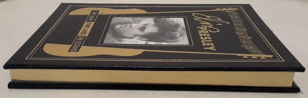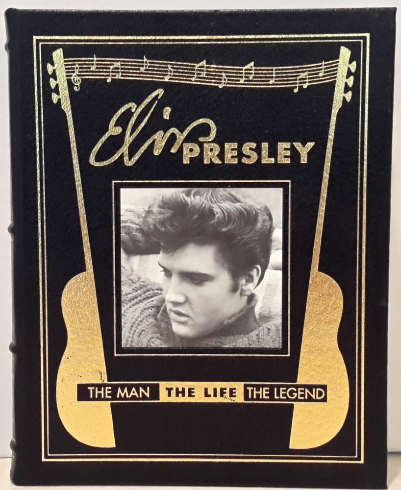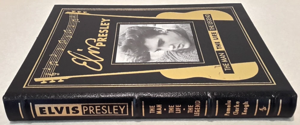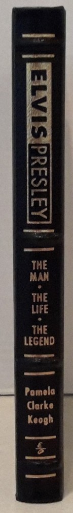 Elvis Presley. The Man. The Life. The Legend . By Pamela Clarke Keogh. Easton Press Edition/Atria Books, 2004. First Edition, with full number line on Copyright page. Illustrated throughout with B&W and color photos. Has leather hardcover, gilt lettering/design on cover and spine, 4 raised bands on spine, gilt-edged text blocks, attached ribbon bookmark, Frontispiece, Table of Contents, List of Illustrations, 264 pages. ISBN: 0-7434-5603-3. Measures about 8” x 10.” Leather hardcovers have hardly any wear. Pages are clean; no creases, tears, writing, or marks. Pages are secure to the spine and binding is tight. Pages are glossy so there is a light glare in the photos. Note that I have described the book as best as I can. Look at all photos closely for condition and details as they are also part of the description. Email with any questions.