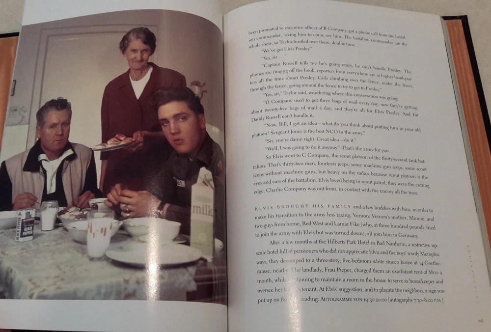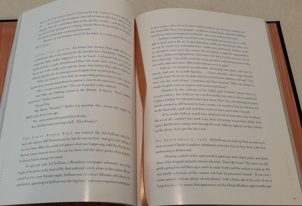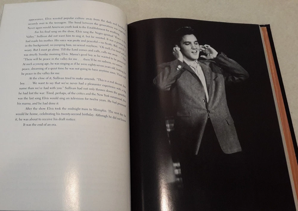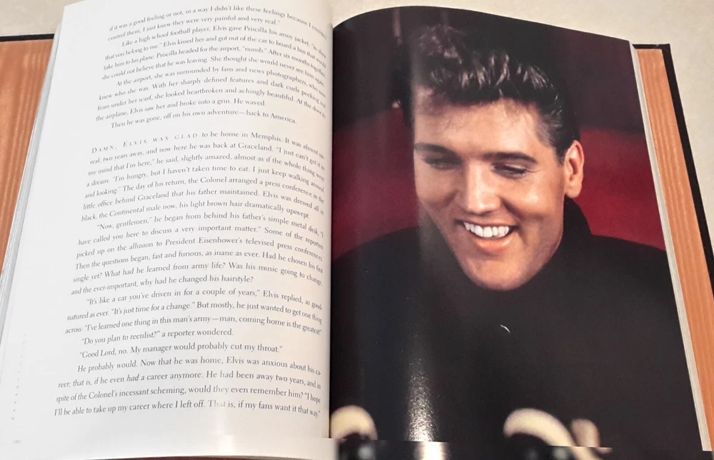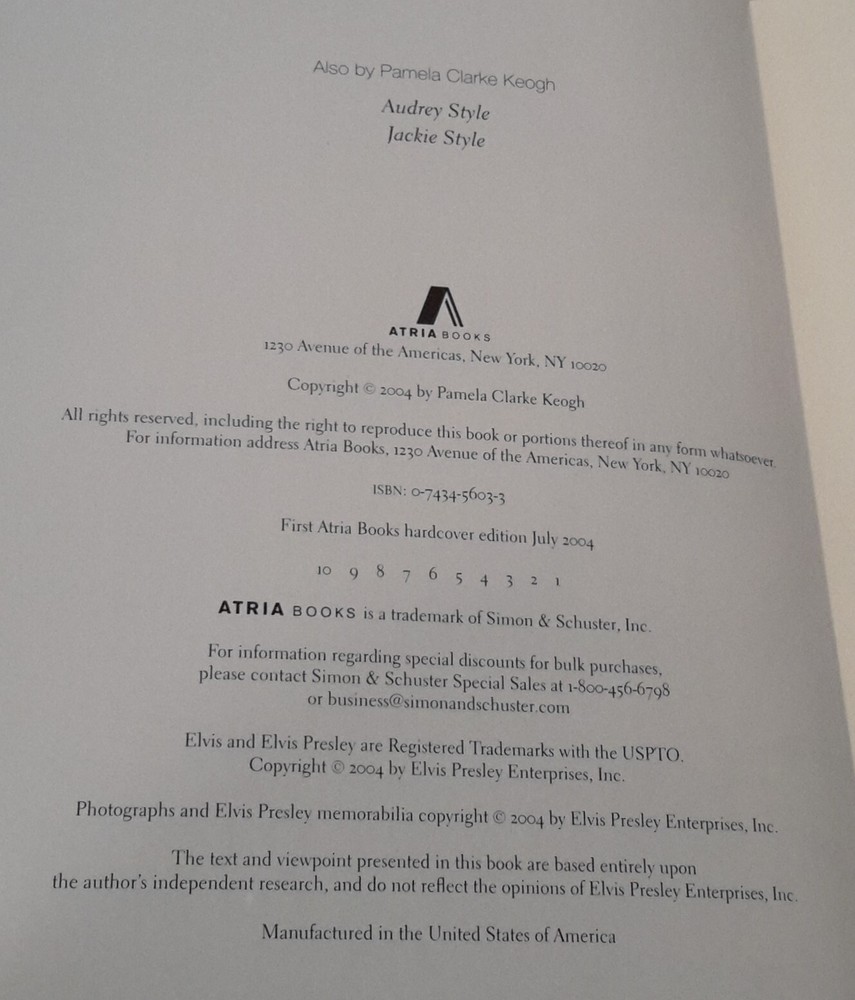 Elvis Presley. The Man. The Life. The Legend . By Pamela Clarke Keogh. Easton Press Edition/Atria Books, 2004. First Edition, with full number line on Copyright page. Illustrated throughout with B&W and color photos. Has leather hardcover, gilt lettering/design on cover and spine, 4 raised bands on spine, gilt-edged text blocks, attached ribbon bookmark, Frontispiece, Table of Contents, List of Illustrations, 264 pages. ISBN: 0-7434-5603-3. Measures about 8” x 10.” Leather hardcovers have hardly any wear. Pages are clean; no creases, tears, writing, or marks. Pages are secure to the spine and binding is tight. Pages are glossy so there is a light glare in the photos. Note that I have described the book as best as I can. Look at all photos closely for condition and details as they are also part of the description. Email with any questions.