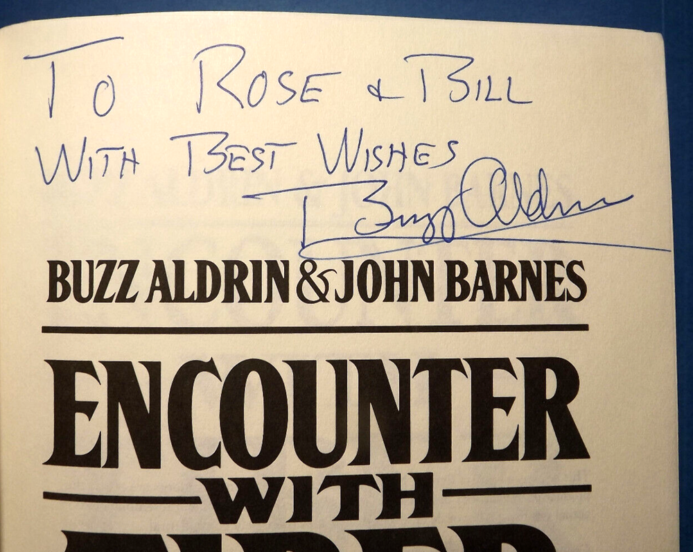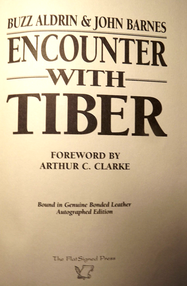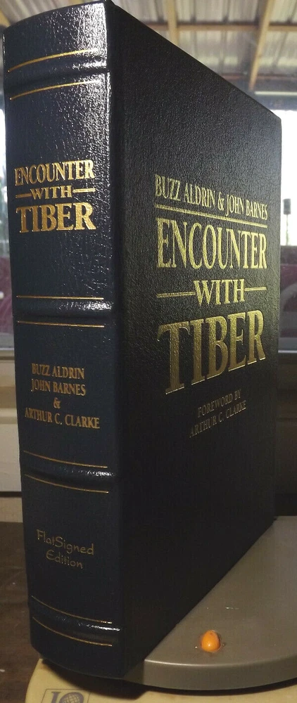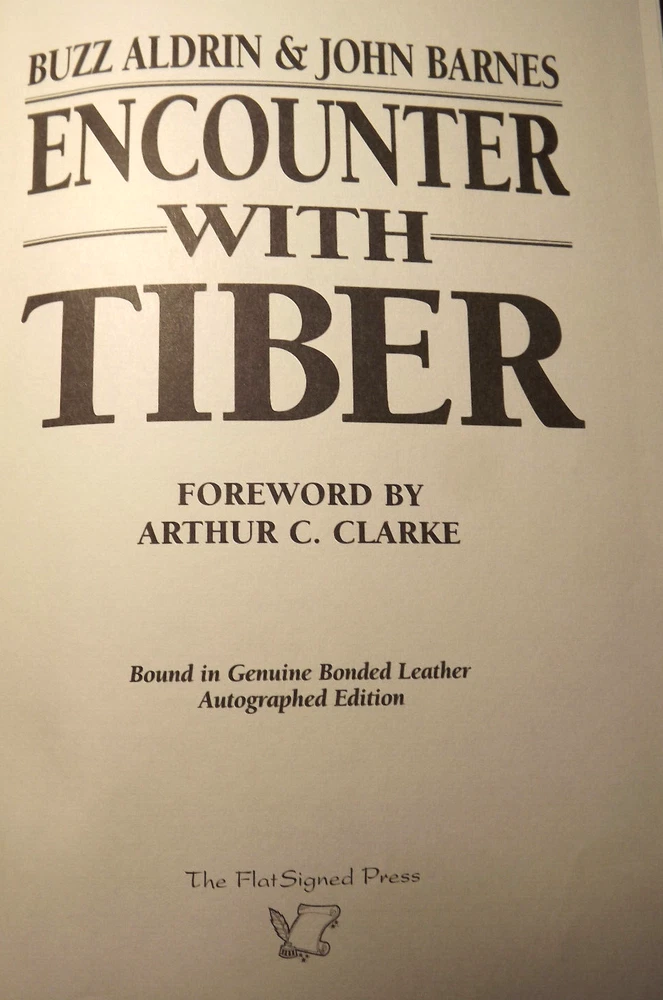 Encounter With Tiber - UNSigned Limited Edition Leather Hardcover Edition in Near Fine to Fine Condition Buzz Aldrin Signed Page Tipped In from book of same title - inscribed to the former owner - I have included a blank label if you wish to cover old owners name - SEE PICS Stated First Printing - SIGNED PAGE FROM 3rd PRINTING No remainder or other markings FREE S&H