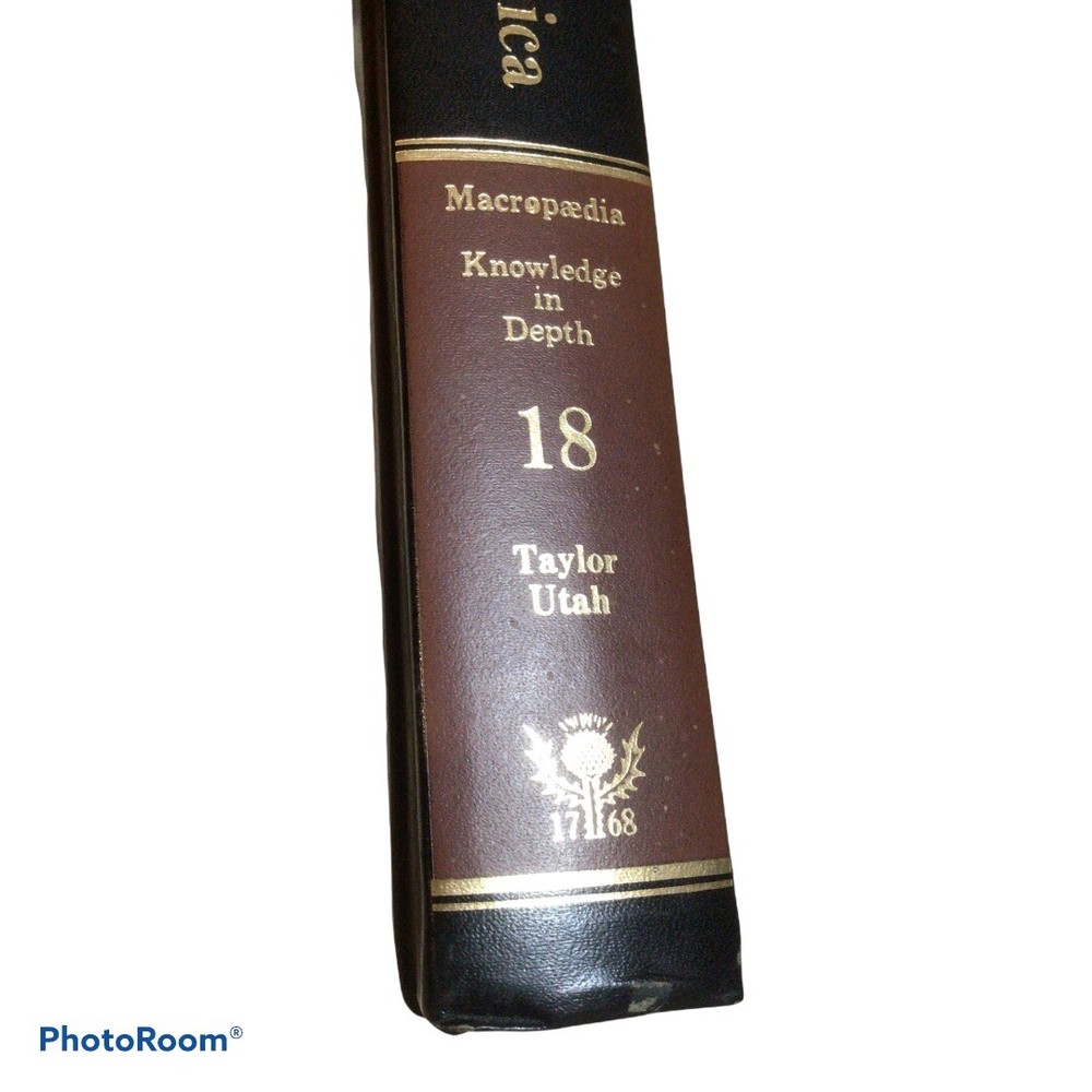 Encyclopedia Britannica, Macropaedia 15th Edition 1981 Vol 18 Excellent Cond. Beautiful volume. Leather bound Volume 18 of 30 Subjects Taylor - Utah No tears, no rips, no writing Beautiful addition for the collector. Gilded gold top edge of pages Over 1100 pages
