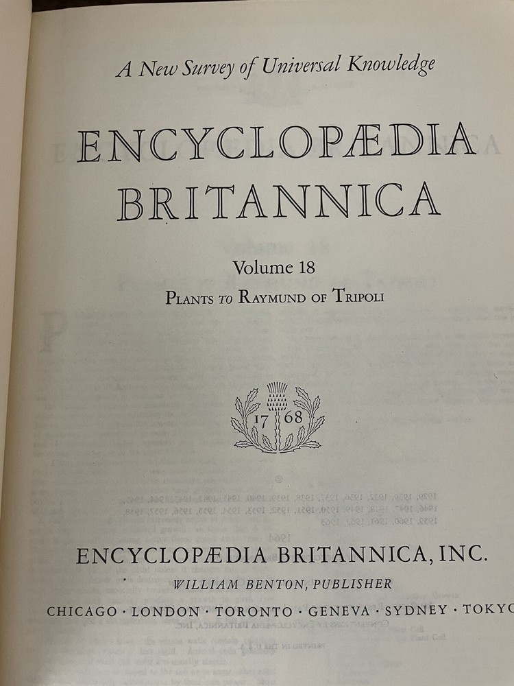 Encyclopedia Britannica 1964 32nd Edition Cream Faux Leather Volume 18. Shipped with USPS Media Mail.