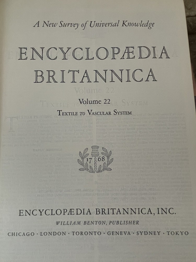 Encyclopedia Britannica 1964 32nd Edition Cream Faux Leather Volume 22. Shipped with USPS Media Mail.