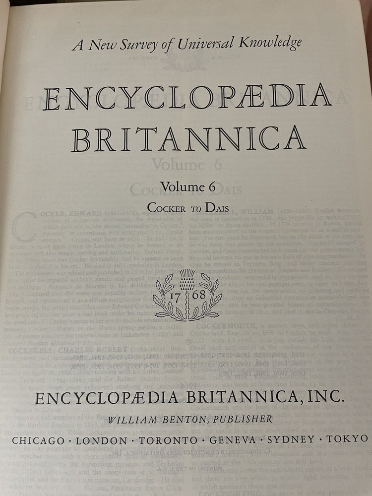 Encyclopedia Britannica 1964 32nd Edition Cream Faux Leather Volume 6. Shipped with USPS Media Mail.