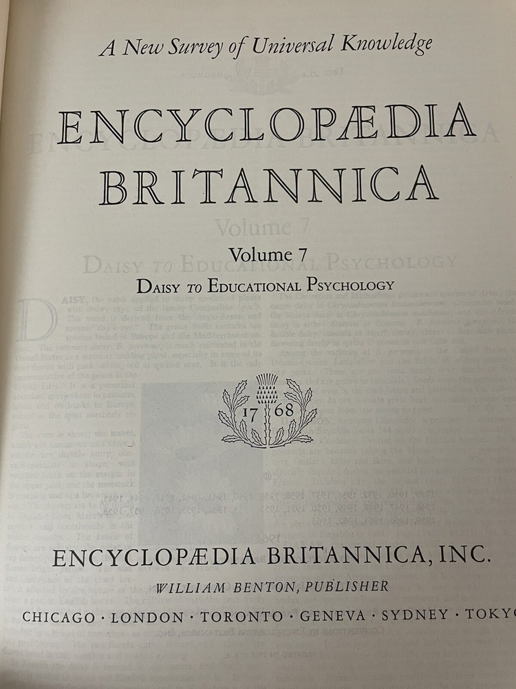 Encyclopedia Britannica 1964 32nd Edition Cream Faux Leather Volume 7. Shipped with USPS Media Mail.