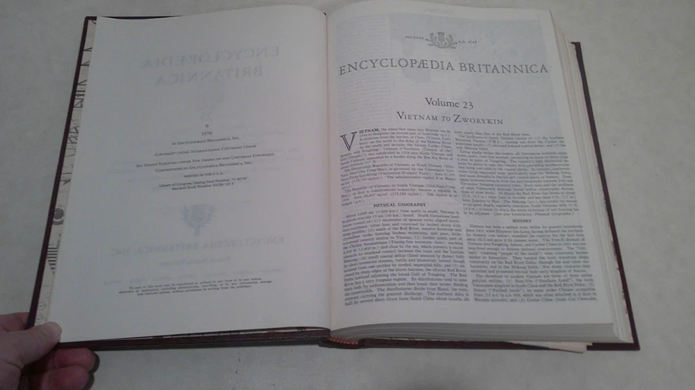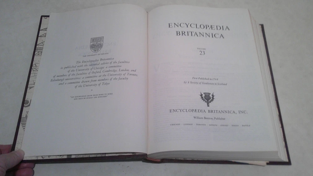 This is a 24-unit set of the Encyclopedia Britannica 1970 edition, consisting of 23 volumes plus an index. The books are leather-bound and published by William, Benton Publisher in the United States. The set is in English and covers a wide range of topics as reference material. Additionally, it includes promotional materials related to the set. This collection is a valuable resource for those interested in comprehensive encyclopedic knowledge from the North American region.