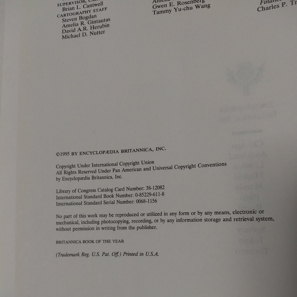 Encyclopedia Britannica 1995 Book Of The Year/Events Of 1994. Very nice condition, like new, no damage.