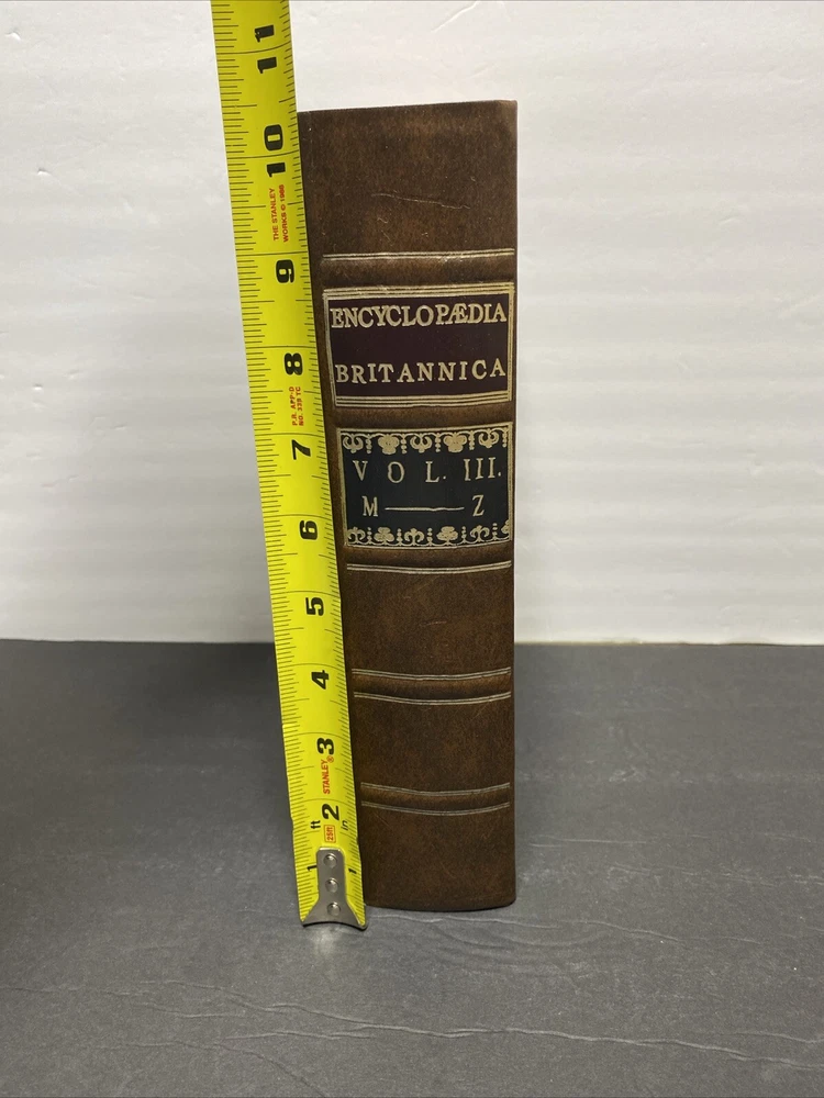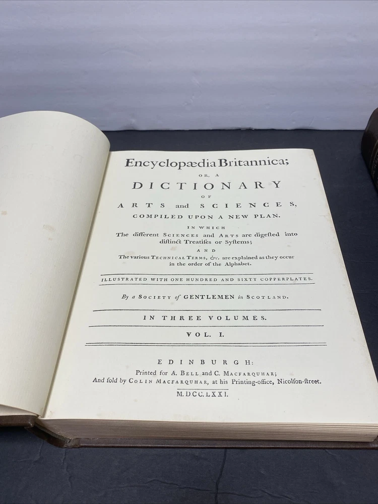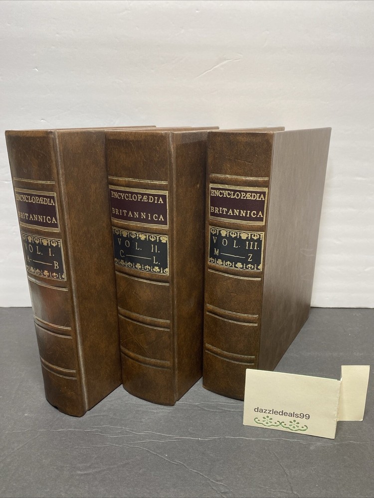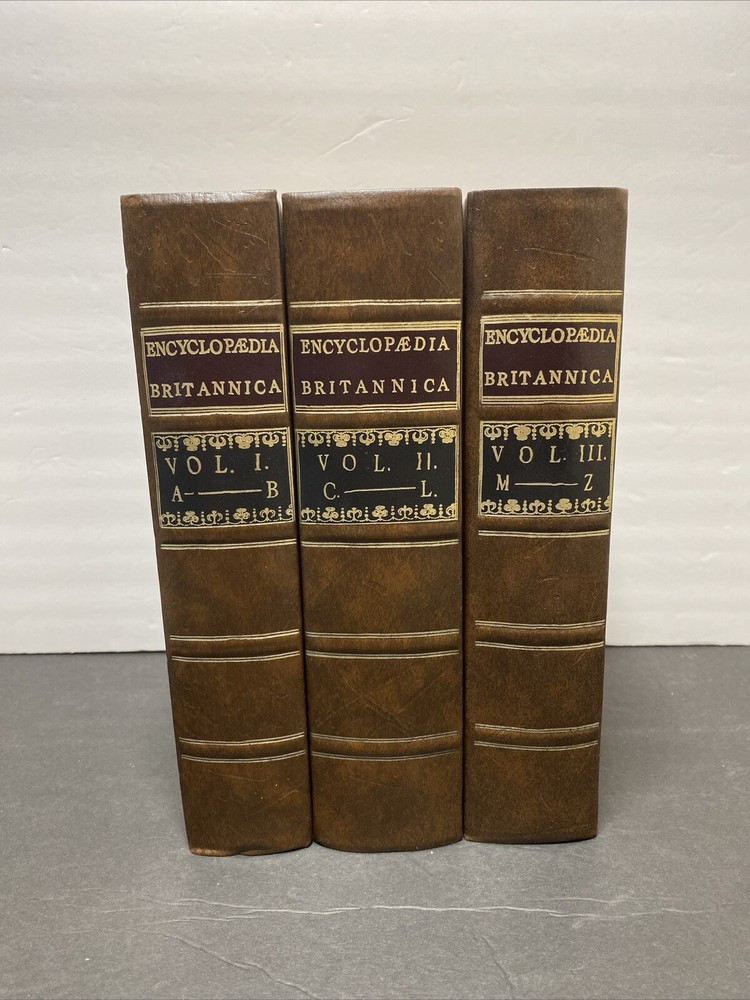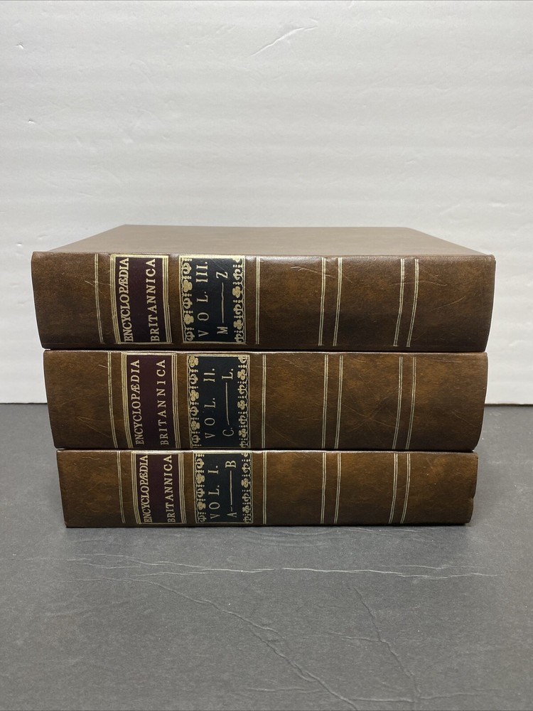 This Encyclopedia Britannica First Edition 1771 3 Volume Facsimile Replica Set is a valuable addition to any collector's library. The set includes three volumes of the first edition, bound in leather and written in English. The special attributes of this set are its rarity and the fact that it is a facsimile of the original. The topic of this encyclopedia is reference, making it a great resource for anyone interested in collecting antiquarian and collectible books. The subject matter is broad and diverse, making it a must-have for any book enthusiast. This item falls under the categories of Books & Magazines and Antiquarian & Collectible.