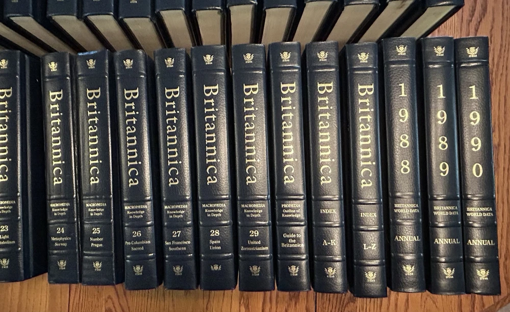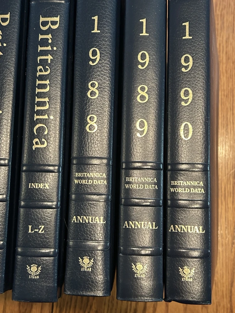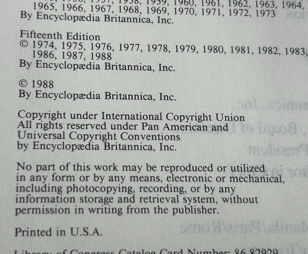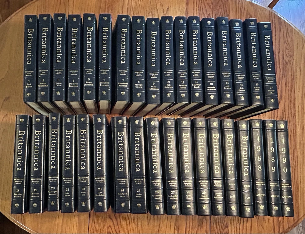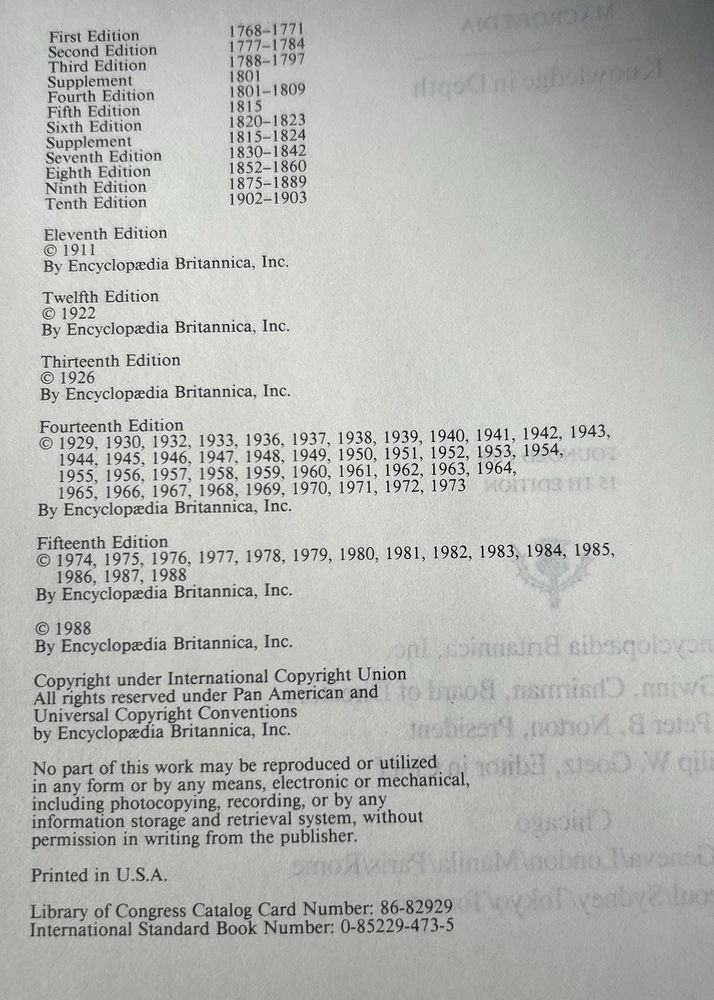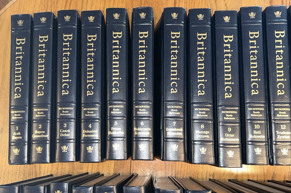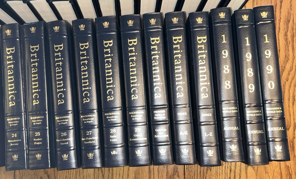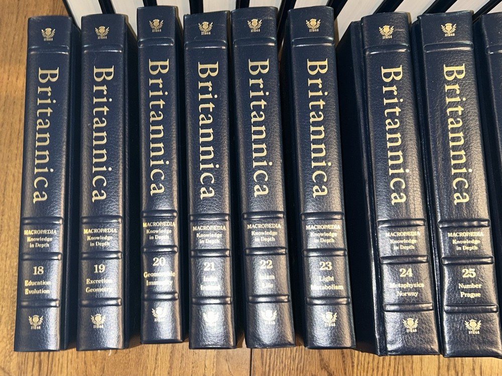 Encyclopedia Britannica 15th Edition 1988 Hardcover 29 Total VOLUMES COMPLETE SET plus Two INDEX, and Guide to Britannica, plus 1988,1989 and 1990 Annuals. Total of 35 Books. - 15th Edition 1988. Please Note: Book #24 has a slight tweak on the binding due to improper storage in box. Please see last 3 photos. Will be shipped by media mail in two or more boxes. . Sorry about the shipping cost these books are very heavy.