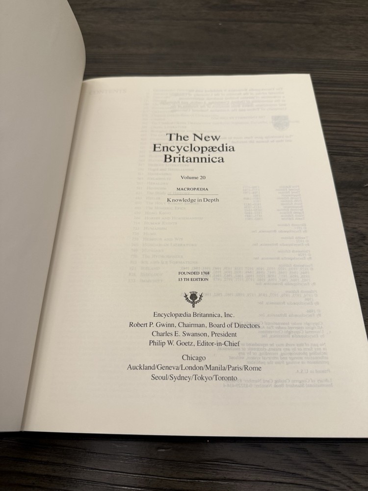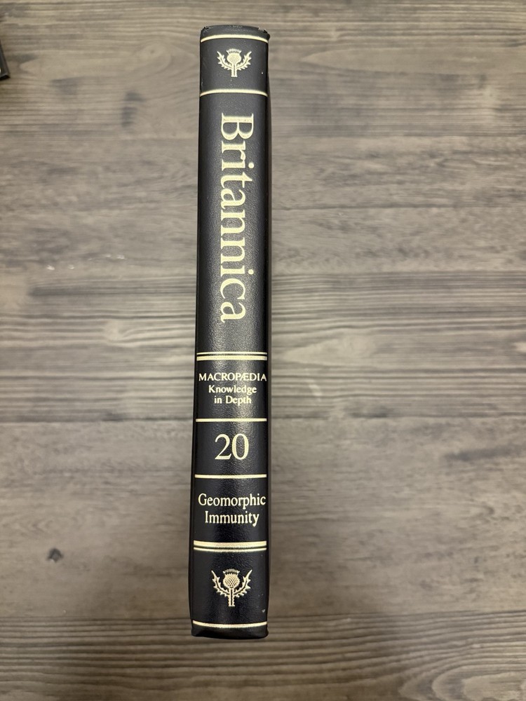 The "Encyclopedia Britannica Macropedia Volume 20 (15th Edition)" is a limited edition English reference book published by Chicago University Press in 1993. This volume is part of the Encyclopedia Britannica series and focuses on a wide range of topics in an encyclopedic format. The book features a leather binding and is padded for a luxurious feel, making it a collector's item for those interested in encyclopedias and academic reference materials.