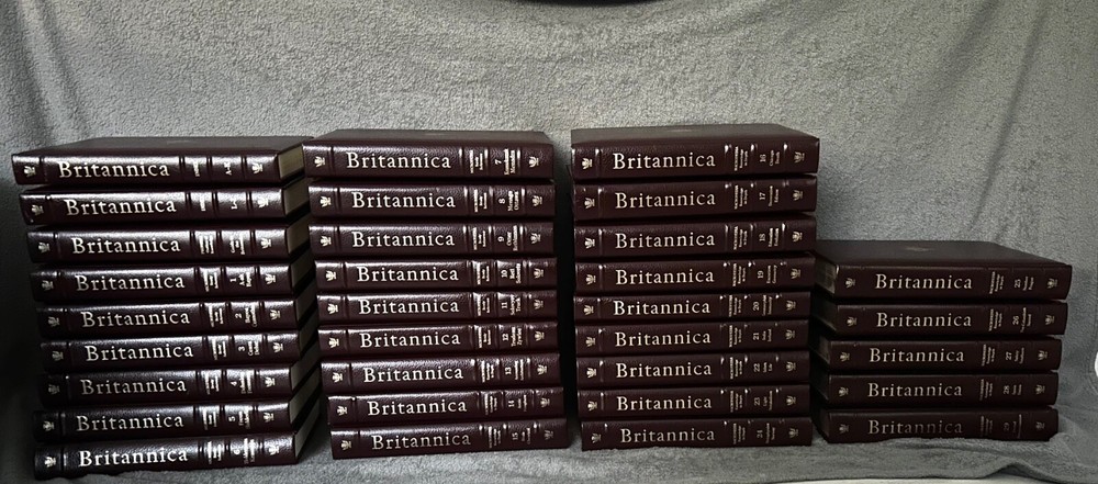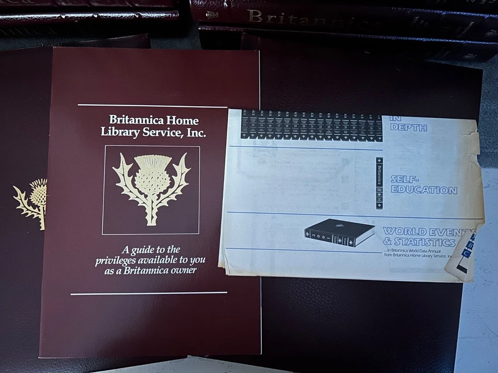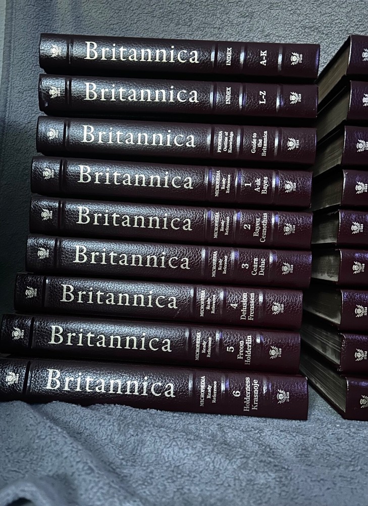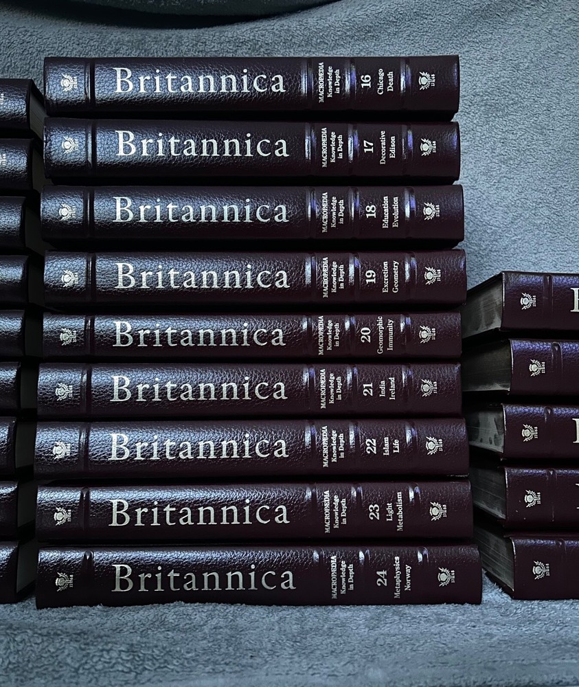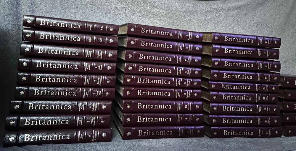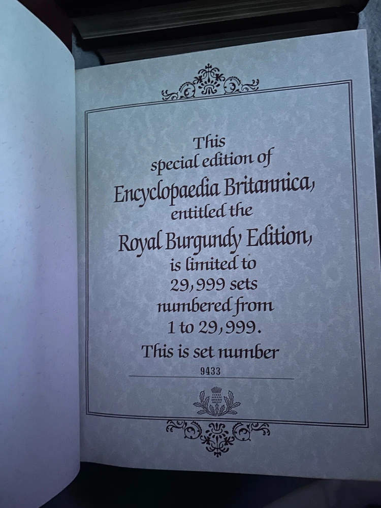 Encyclopedia Britannica Micropedia burgandy. All books are in great condition. Will come with original guide. Please see last picture for only ‘flaw’ which is on the guide. These are LE 29,999 and this set is numbered. The set includes leather-bound volumes in English, with each volume numbered and covering a wide range of topics for reference. This set was manufactured in the United States and is a valuable resource for collectors and anyone interested in expanding their knowledge across various subjects. Open to offers, message me!