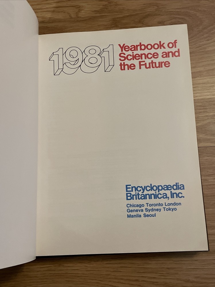 Encyclopedia Britannica Science and The Future 1981 Yearbook HC Leather Bound. I have many many more antique and vintage books up for bid and we do combine shipping. These books all came from a estate in the Detroit Michigan area. Most look like new and some are acceptable. Some of the books may have inscription inside, light wear, corner bumps, but I try to take pictures of all the defects if any. Thank you for looking,,,,,,,,Please email any and all questions Welcome to our auction house,,, i will be listing many things most starting under $5.00. We do combine shipping, so please see our other auctions. Please email any and all questions. Thank you for looking and have a blessed day " Estate find ,,,, All items sold as is, no refunds or returns continental US only, please email any and all questions We ship Most items within 1 to 2 business days ( not including Sunday’s and Holidays.We offer free shipping and calculated shipping on various items. We will combine shipping on multiple item purchases, as long as it is a calculated item and not free shipping. ( unless stated in the auction). We do offer free local pickup on large bulky items. Returns: Most items are from estate sales and auction houses. We cannot guarantee items are from smoke free pet free homes. All items are washed and tested before listing. Items are sold as is with no returns, Items are described to the best of my knowledge. Always ask all questions before purchasing. If return is accepted, buyer is to pay for return shipping. Feedback: We work hard to keep our feedback rating in good standing.If you are pleased with your item, please take a second to leave us a positive 5 star rating, and if there is a problem, please contact us immediately using EBay messaging service before leaving a negative. We will work with you to correct the situation, and make your transaction right. Thank you for your business, and happy shopping