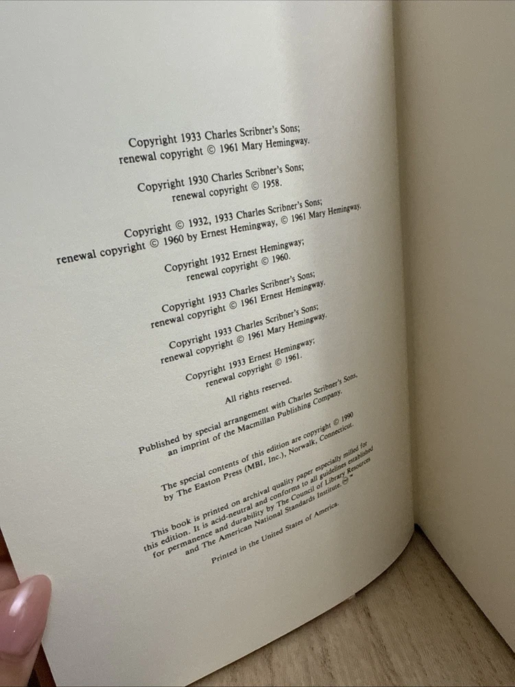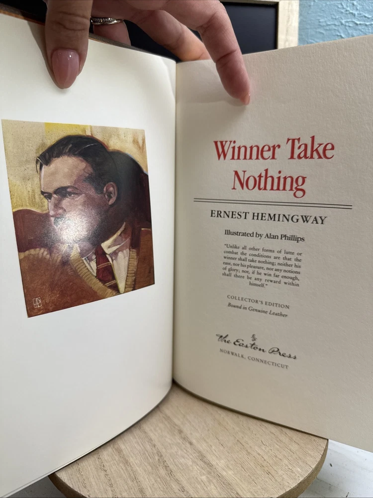 Ernest Hemingway's "Winner Take Nothing" comes to life in this luxurious Easton Press Collector's Edition from 1990. The full leather binding is richly illustrated by Alan Phillips, adding a unique touch to this biography and autobiography. This first edition is a must-have for any serious collector of literature and is perfect for display or reading.