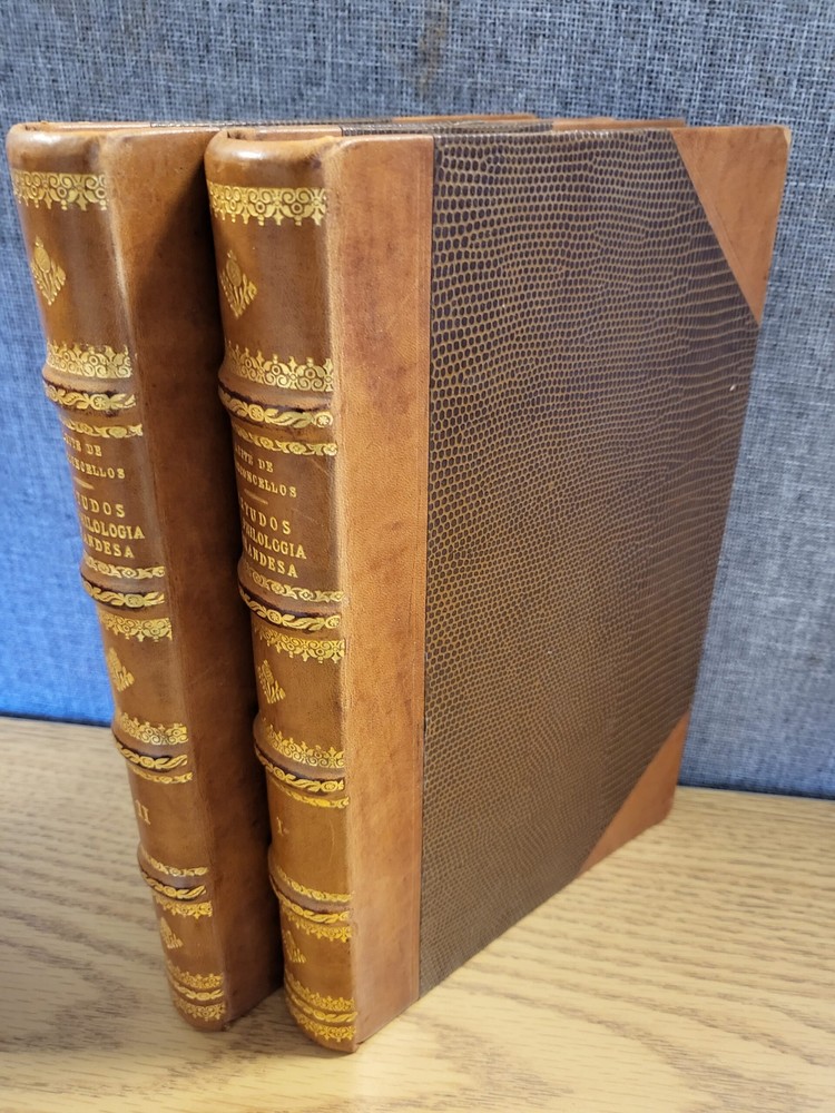 HGG Books presents ... Estudos de Philologia Mirandesa 2 fine leather volumes complete Author: J Leite Vasconcellos Publisher: Imprensa Nacional Release Date: 1900 Seller Category: Language Qty Available: 1 Condition: Collectible: Very Good Sku: philologiamirandesa Notes: Estudos de Philologia Mirandesa 2 fine leather volumes complete by J Leite Vasconcellos published in 1900. Rebound in fine leather bindings with raised spines and gold embossed decoration.Pages show moderate toning, binding tight, leather binding clean and brightCheck our other listings for fine Portuguese volumes just in from local noted Brazilian scholars. Don't forget to check out other great deals in our eBay Store!!