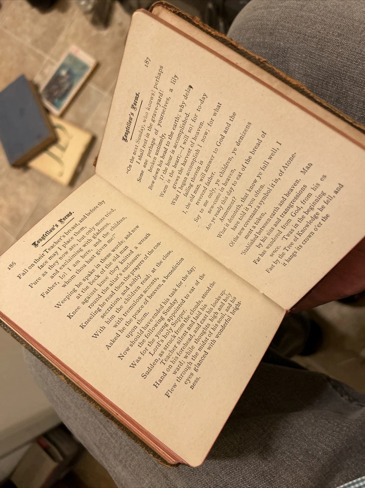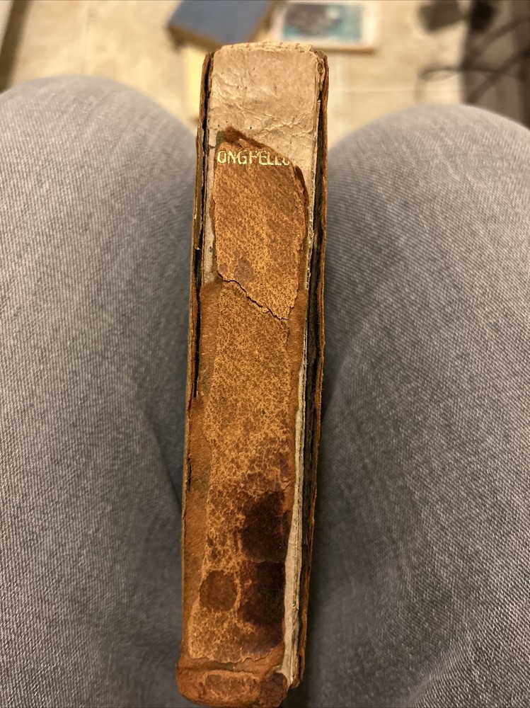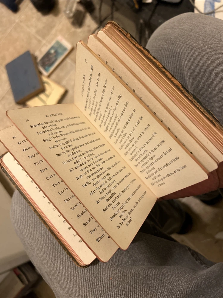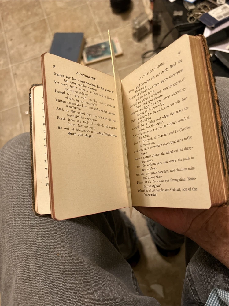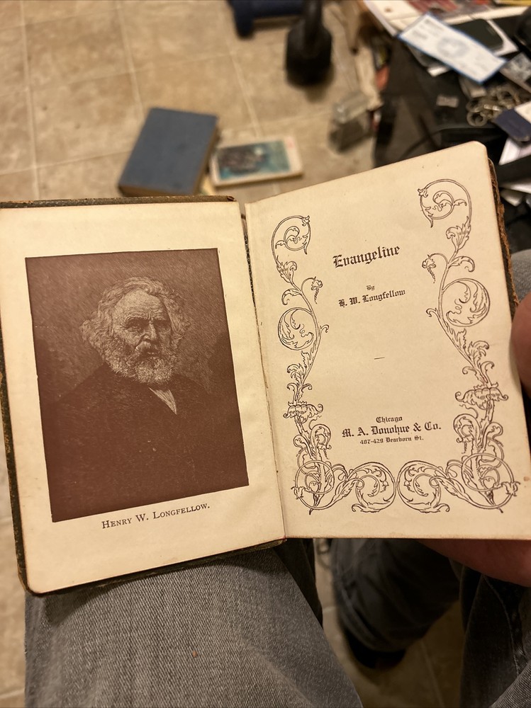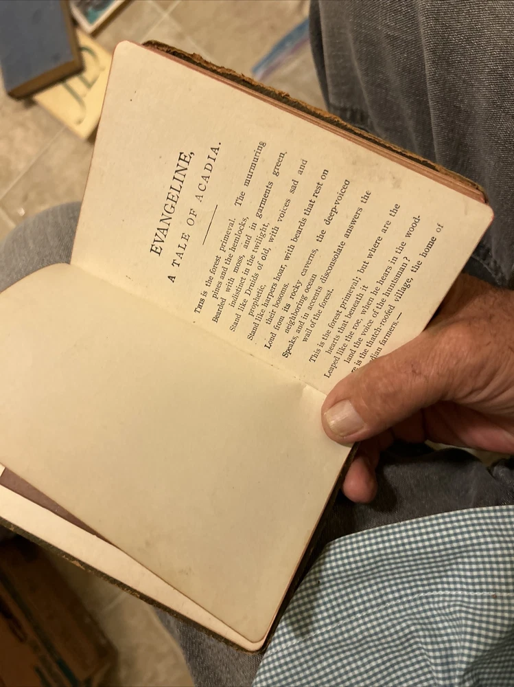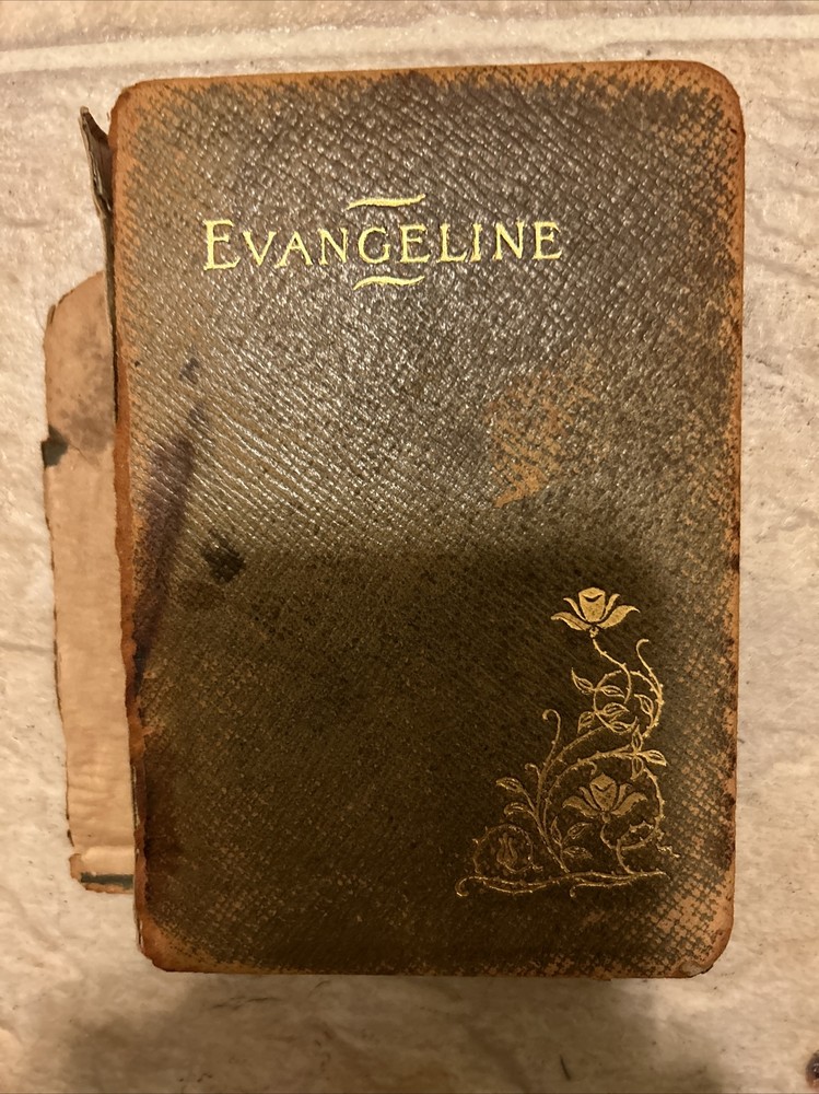 This book is a classic piece of literature written by Henry W. Longfellow. It is a leather-bound original copy published by W.B. Conkey Company, featuring the story of Evangeline set in Acadia. The book is in English and has no illustrations. It is a literary work that could be a first edition without any personalized or signed features. The book is in North America and has no California Prop 65 warning.