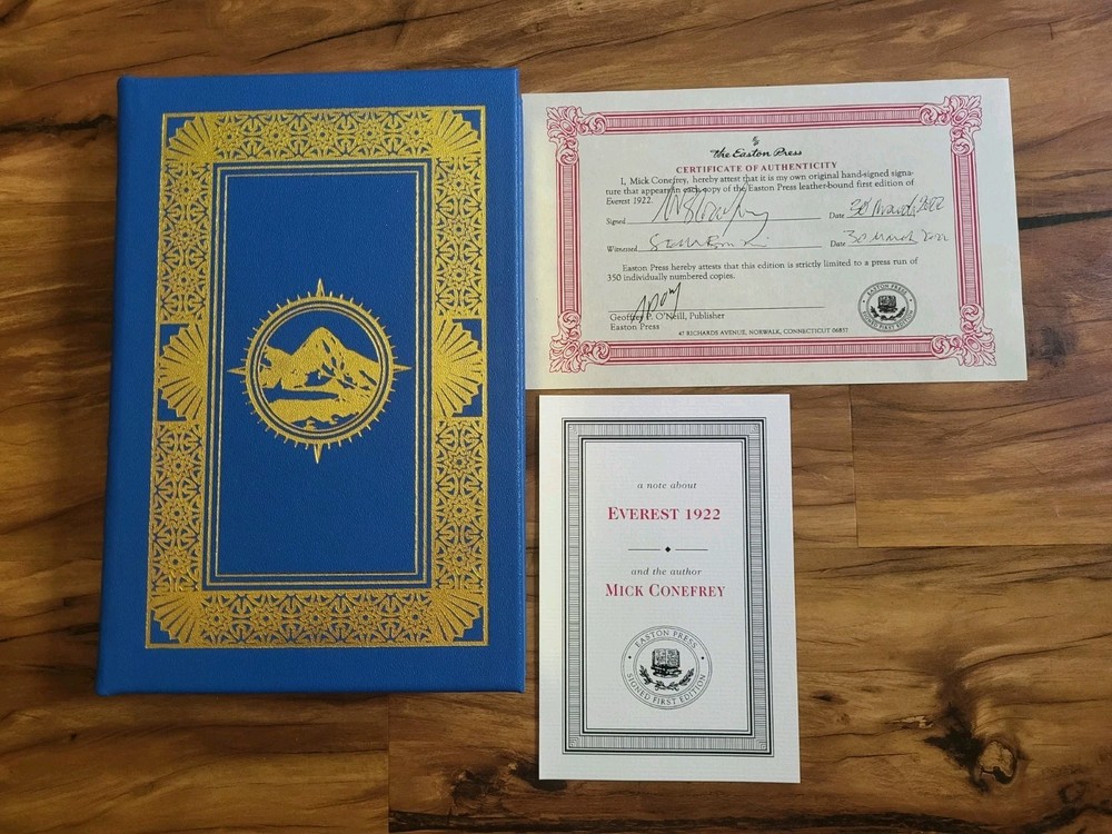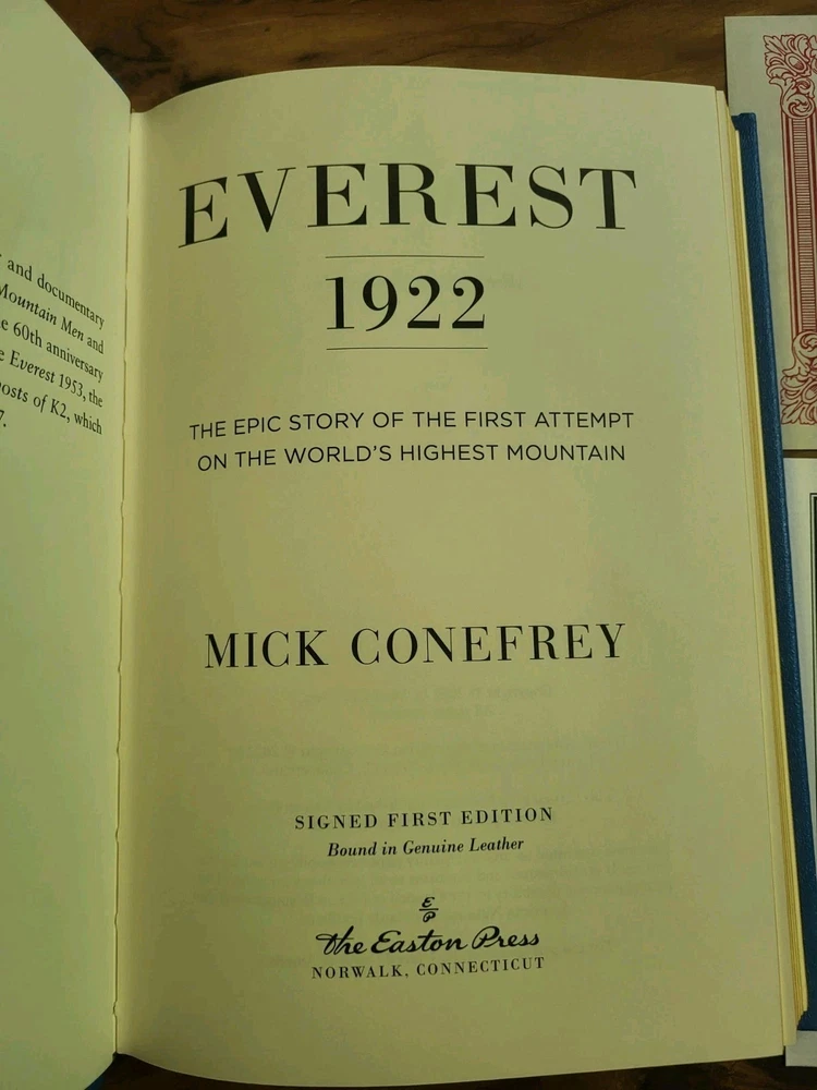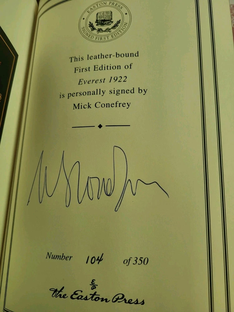 Explore the gripping narrative of "Everest 1922" by Mick Conefrey, a compelling addition to any literary collection. This Easton Press first edition is adorned with a luxurious leather binding, exuding a classic charm that invites readers and collectors alike to immerse themselves in the storied past of one of the most iconic mountain expeditions. Autographed by Mick Conefrey himself, this volume is not just a piece of history but also a personal touchstone for enthusiasts of biography and autobiography. Crafted in the United States, it stands as an original work, promising to be a treasure for those who cherish the intersection of adventure and written word.