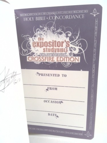 Expositor's Study Bible KJV Crossfire Deluxe by Gabriel Swaggart SIGNED by the author. Minor shelf and handling wear, overall a clean solid copy with minimal signs of use. Secure packaging for safe delivery.