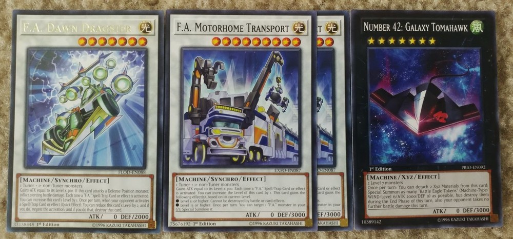 This F.A. deck is a blast to play! The Machine Duplication combo with Cyber Dragon and Galaxy Tomahawk creates insane advantage, and the F.A. engine keeps the momentum going strong. The card quality is great, and the included sleeves are a nice touch. Everything arrived safely and exactly as pictured. Perfect for competitive dueling or just having fun with speedy machine plays! Highly recommended for any Yu-Gi-Oh! fan looking for a unique and powerful deck.