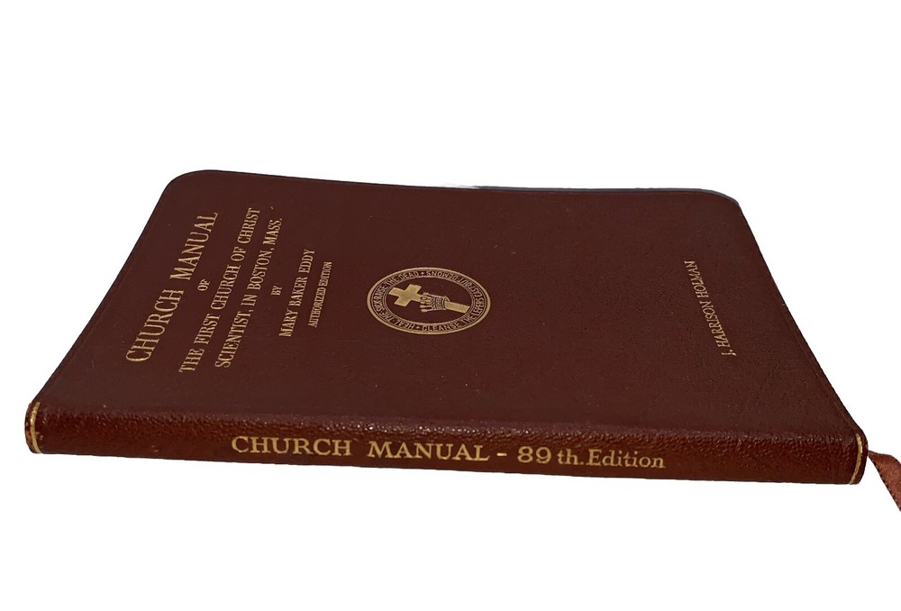 This is a vintage leather-bound 89th edition of "First Church of Christ Scientist Church Manual" by Mary Baker Eddy, published in Boston in 1938. The book is written in English and is about religion, specifically focusing on rules and principles, It was published by Mary Baker Eddy in the United States and is an original edition.