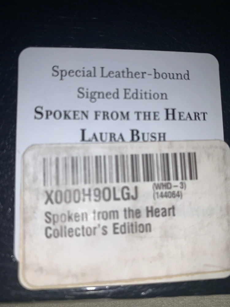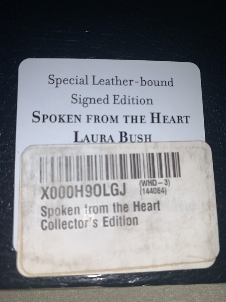 You are bidding on a autographed FIRST LADY LAURA BUSH SIGNED BOOK SPOKEN FROM THE HEART. This is the hand signed Special limited edition numbered leather bound version. The book is a 1st edition and 1st printing. The book is BRAND NEW and still sealed. The book will be sent well packed in a box.