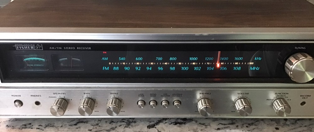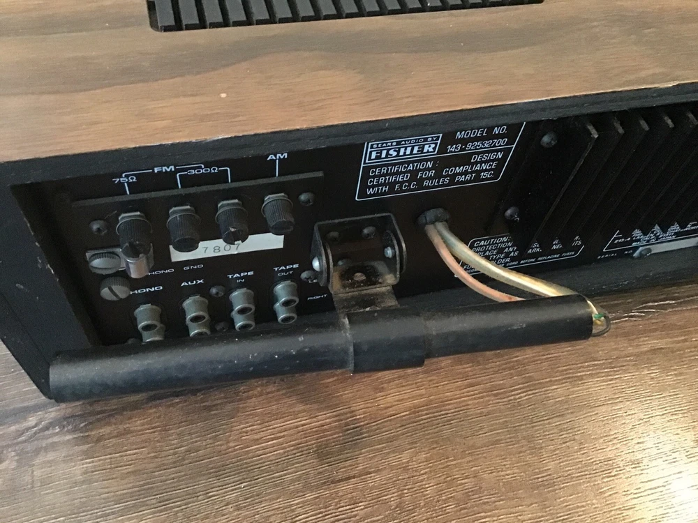 FISHER 143.92532700 AM FM STEREO RECEIVER POWERS ON GOOD SHAPE. PLUGGED IT IN AND IT CAME ON- NO FURTHER TESTING WAS PERFORMED. May need some repairs may work just fine. Has a bit of dust inside where the one dial arm is. Shows some light usage wear, case shows some very minor wear. Estate find comes as seen in photos. Free shipping to LOWER 48 STATES ONLY SINCE NOT FULLY TESTED. BEING SOLD FOR PARTS OR REOAUR. NO RETURNS. C-3