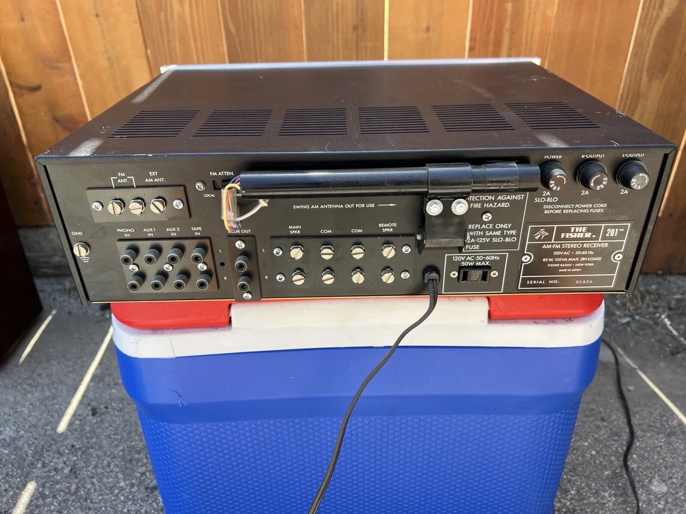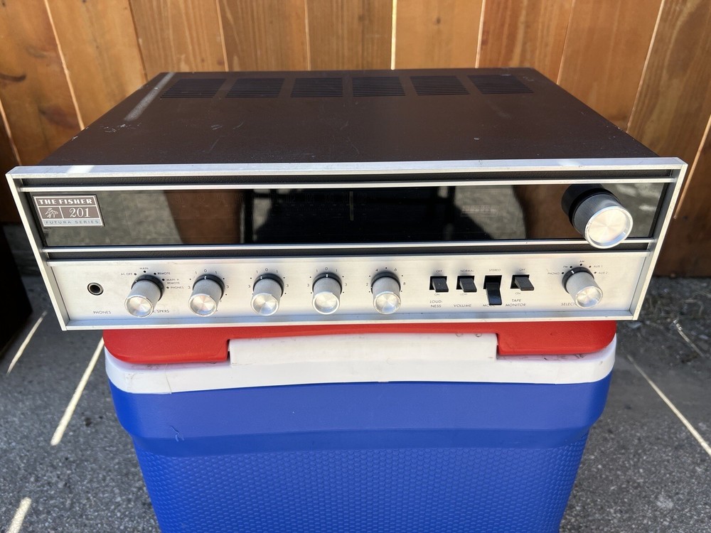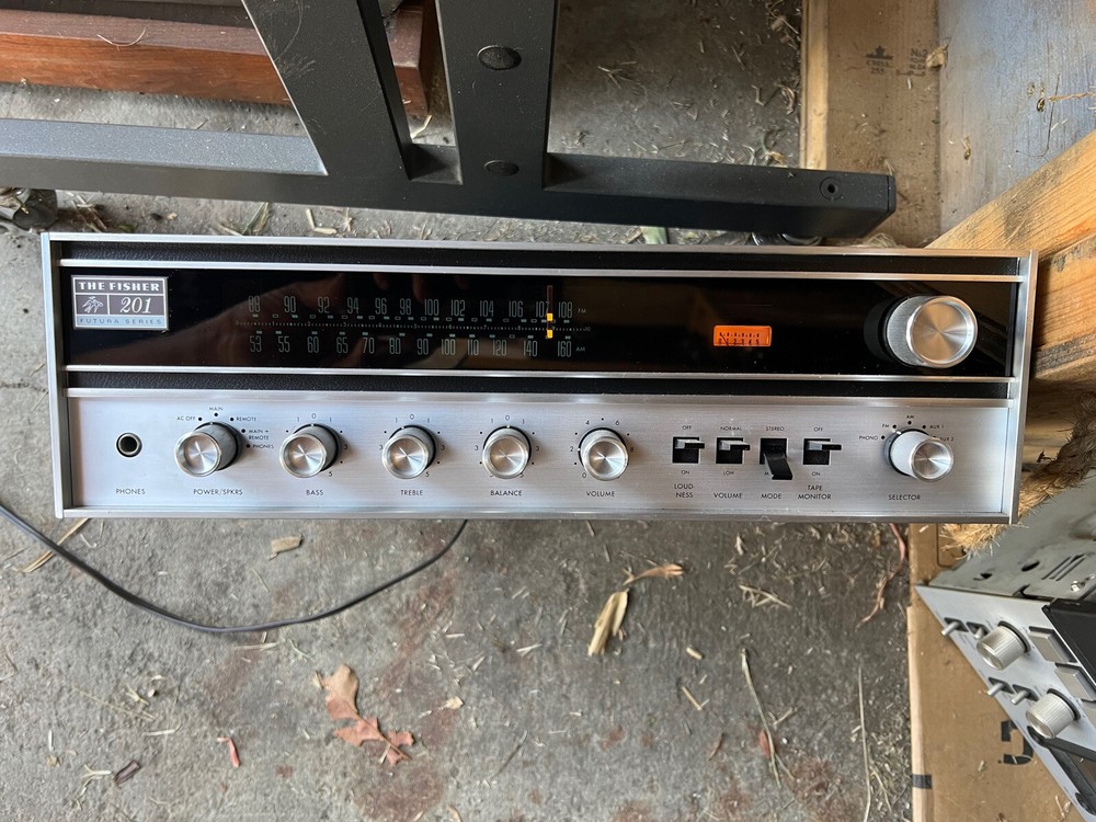 FISHER 201 FUTURA SERIES AM-FM STEREO RECEIVER ***FOR PARTS OR NOT WORKING*** THE FM STATIONS DON'T WORK , AM WORKS 120V 50/60HZ SERIAL NUMBER: 66924 MADE IN JAPAN IN GOOD CONDITION WITH SCRATCHES, SPOTS AND SIGNS OF USE IT COMES WITH ATTACHED POWER CORD ONLY NO WARRANTY, NO RETURNS PLEASE, SEE OUR OTHER ITEMS! GOOD LUCK AND THANK YOU FOR LOOKING!