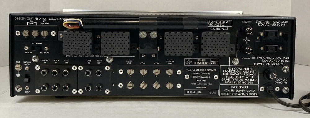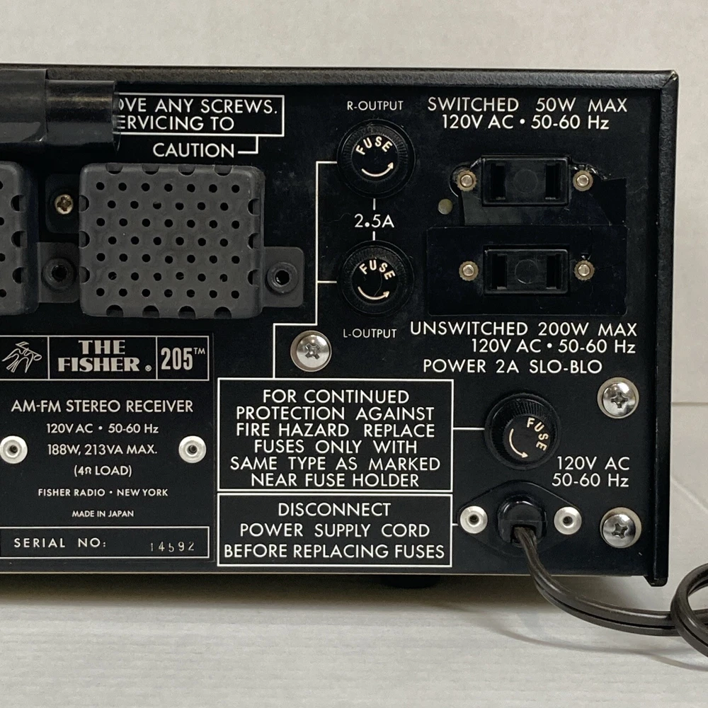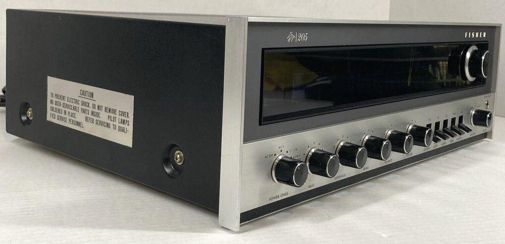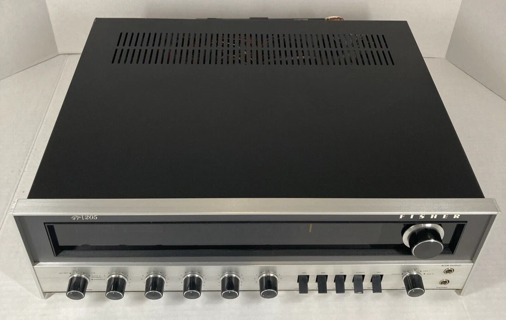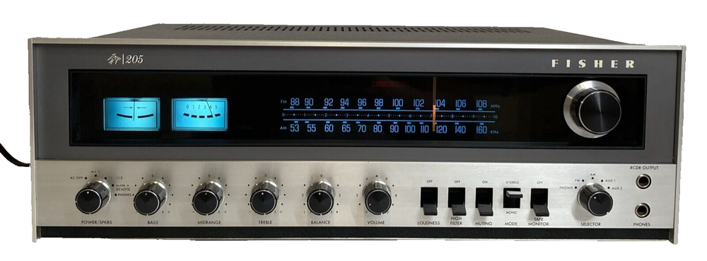 This is a very clean vintage Fisher 205 AM/FM stereo receiver from 1972. Outstanding build quality. Stunning looks in brushed aluminum and gun-metal grey. Performs flawlessly. All controls have been cleaned and all lamps are upgraded to LED, fully functional. Inputs -1 Phono with High and Low setting -2 AUX Inputs -Tape loop -Two Speaker outputs -FM Attenuator for local / distance setting It sounds very, very good. Very balanced, excellent sound stage, easily drives 4 to 16 Ohm impedance speakers. Fast shipping and free 30 day return.
