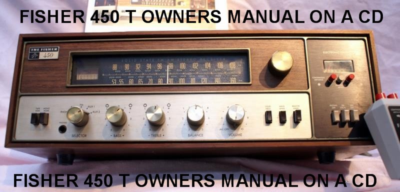 FISHER 450T STEROPHONIC AM FM RECEIVER OWNERS MANUAL ON A CD HERE YOU HAVE THE FISHER 450T STEREOPHONIC AM FM RECEIVERS OWNERS MANUAL ON A CD. THIS CD IS IN THE PDF FORMAT THEREFORE IT CAN BE VIEWED ON ANY COMPUTER. YOU CAN ZOOM IN OR OUT ,PRINT ANY PAGE, OR PRINT THE ENTIRE MANUAL. 23 PAGES. PLEASE NOTE THE CONTENT OF THIS ITEM IS IN THE PUBLIC DOMAIN AND DOES NOT INFRINGE ON ANY COPYRIGHT ! Track Page Views With Auctiva's FREE Counter I will be out of the Country (VIETNAM) until April 24th 2011. You can still make your purchase and i will ship it out as soon as I return on April 24th 2011. Thank you very much.