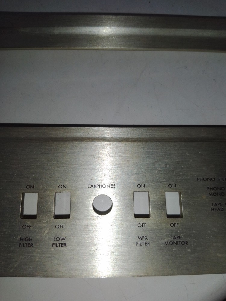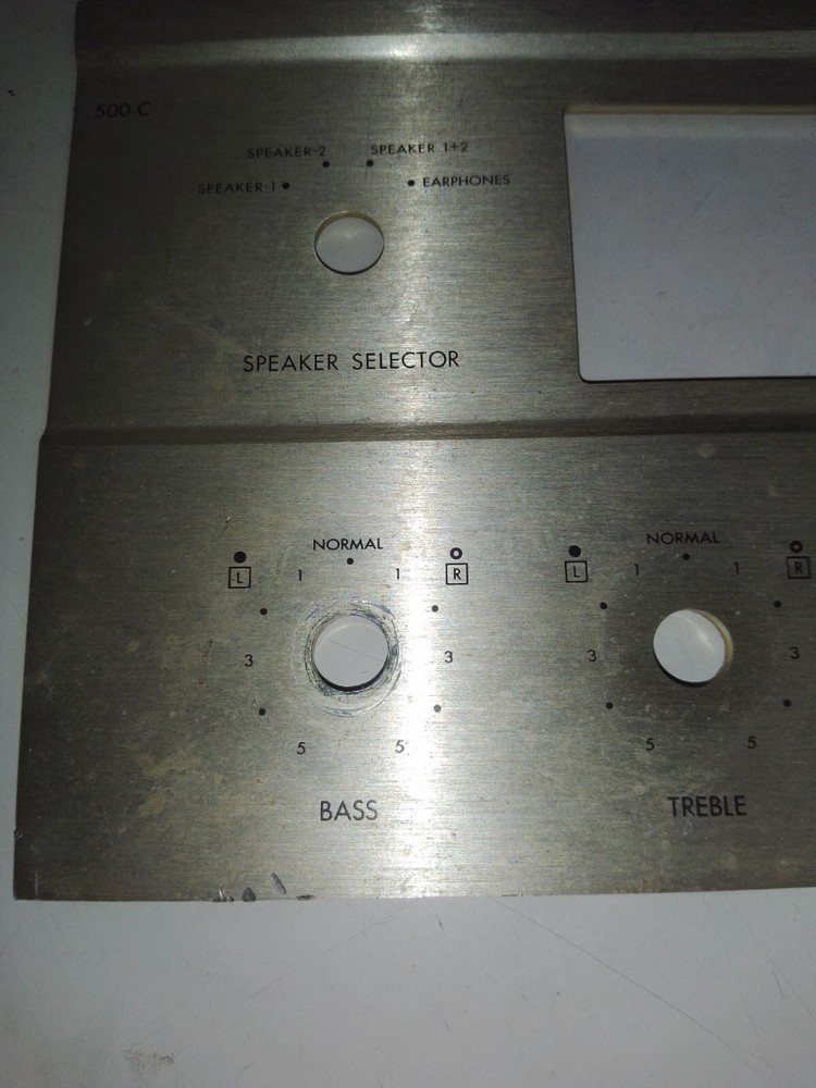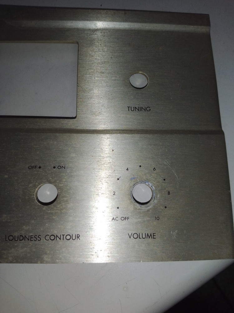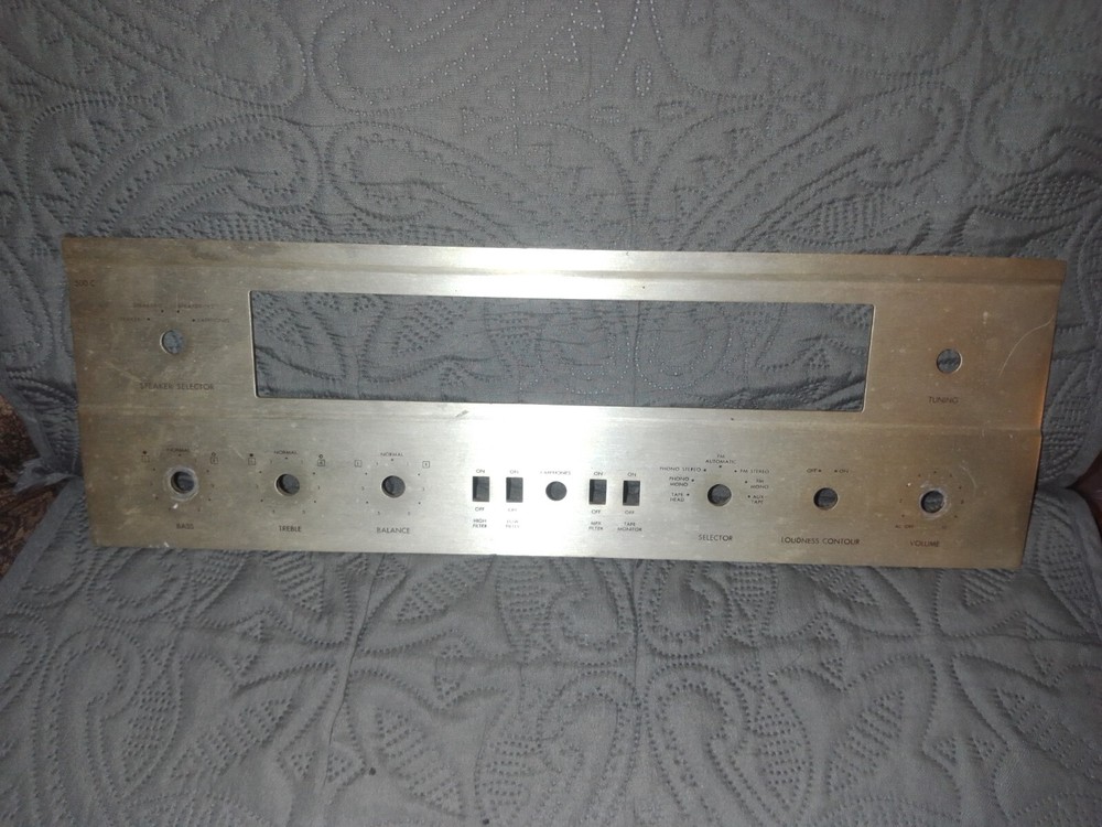 Front panel for FISHER 500C FM stereo receiver. No lettering loss but has some dings and couple of scratches. Dirty and has not been cleaned. Buyer to pay shipping. Note three shipping options. Thank you for looking !!!