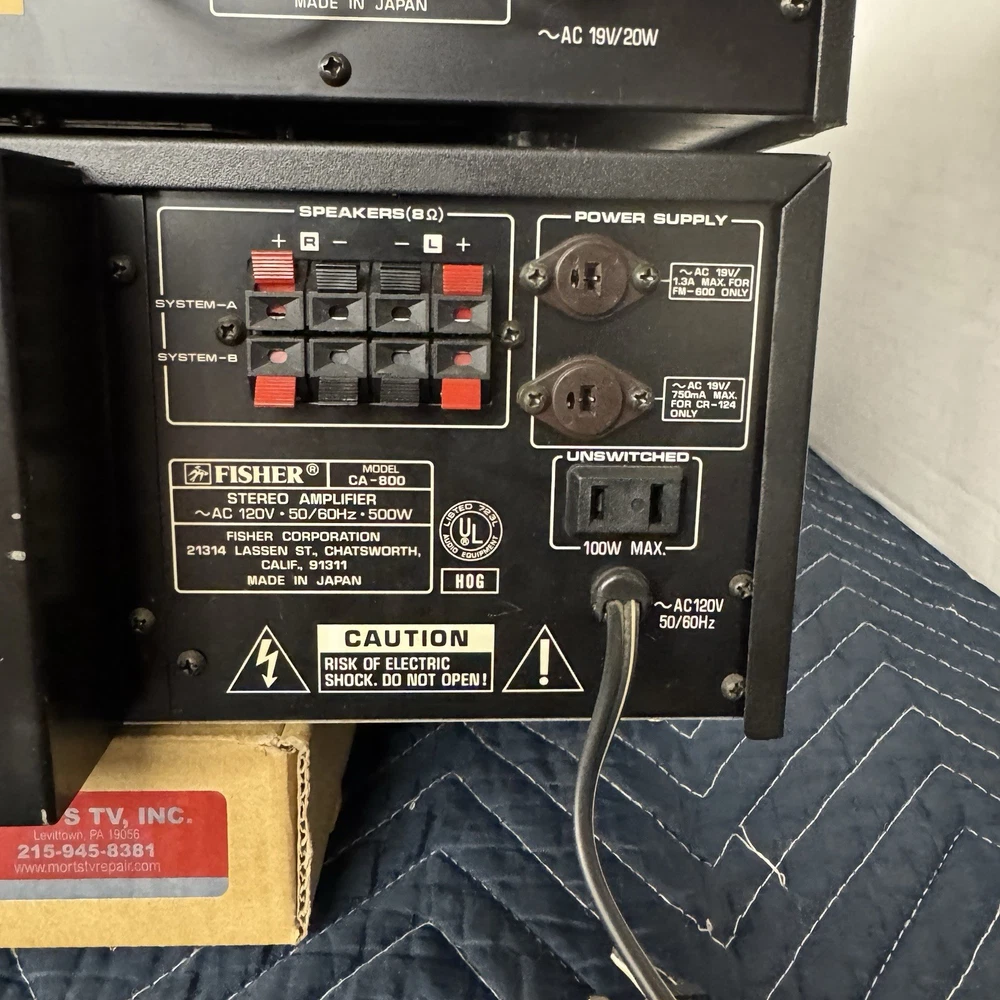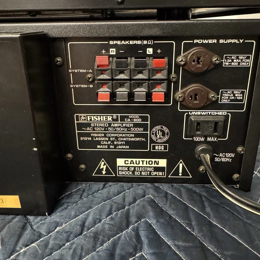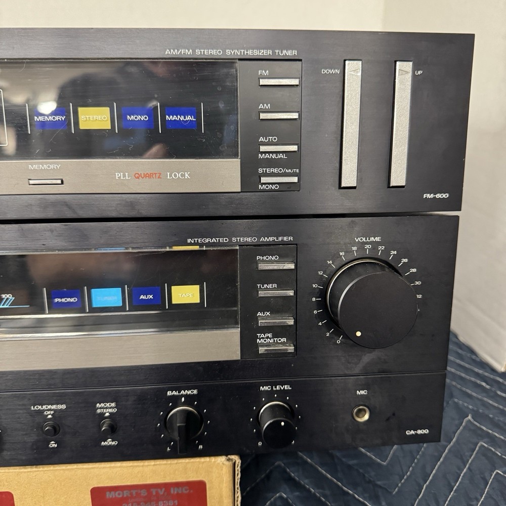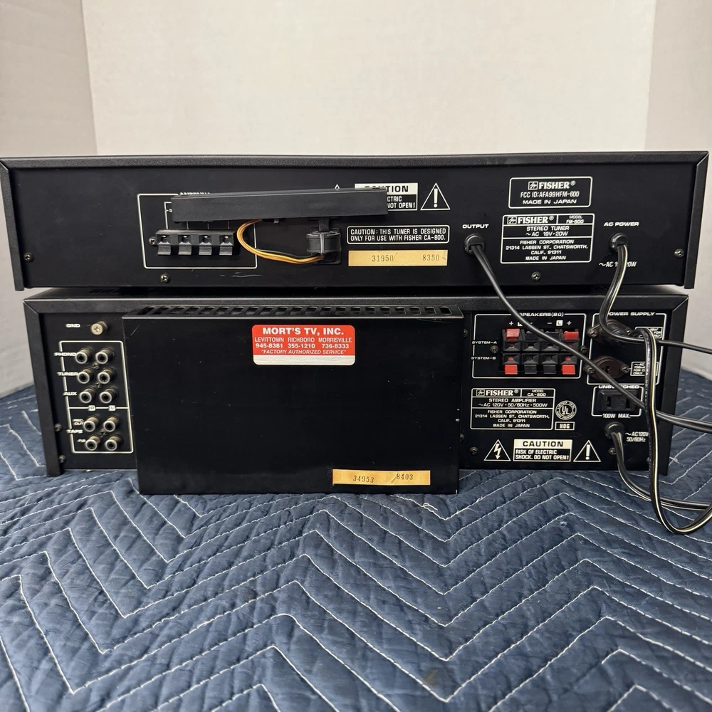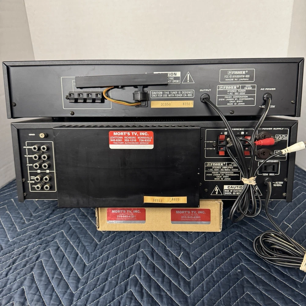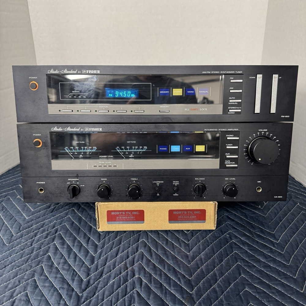 FISHER CA-800 AND FM-600 INTEGRATED STEREO AMPLIFIER AND MATCHING DIGITAL TUNER . 100 WPC. THIS INTEGRATED STEREO AMPLIFIER AND TUNER WORKS PERFECTLY AND IS IN VERY GOOD CONDITION INSIDE AND OUT. WE REPLACED ALL DEFECTIVE CAPACITORS AND ANY OTHER DEFECTIVE COMPONENTS. REPAIRED ALL POOR SOLDER CONNECTIONS. CLEANED ALL CONTROLS AND SWITCHES. ( WE HAVE BEEN IN BUSINESS FOR OVER 60 YEARS REPAIRING VINTAGE AUDIO EQUIPMENT.) IF YOU HAVE ANY CONCERNS, PLEASE CONTACT US PRIOR TO YOUR PURCHASE.